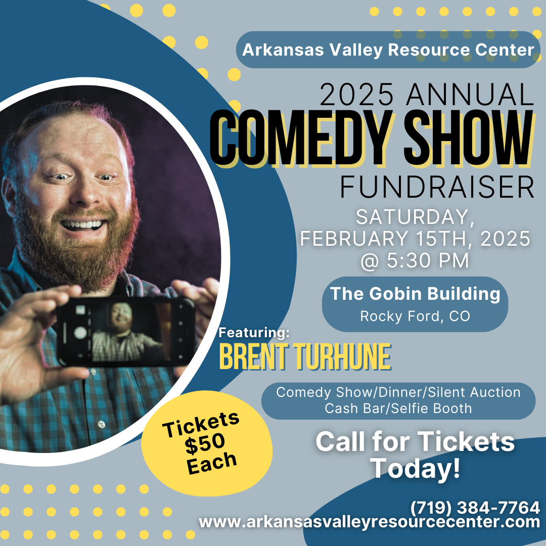 Description: Join the People of Southeast Colorado for the 2025 Annual Comedy Show to Benefit the Arkansas Valley Resource Center on Feb 15th at The Gobin Building in Rocky Ford, Colorado...