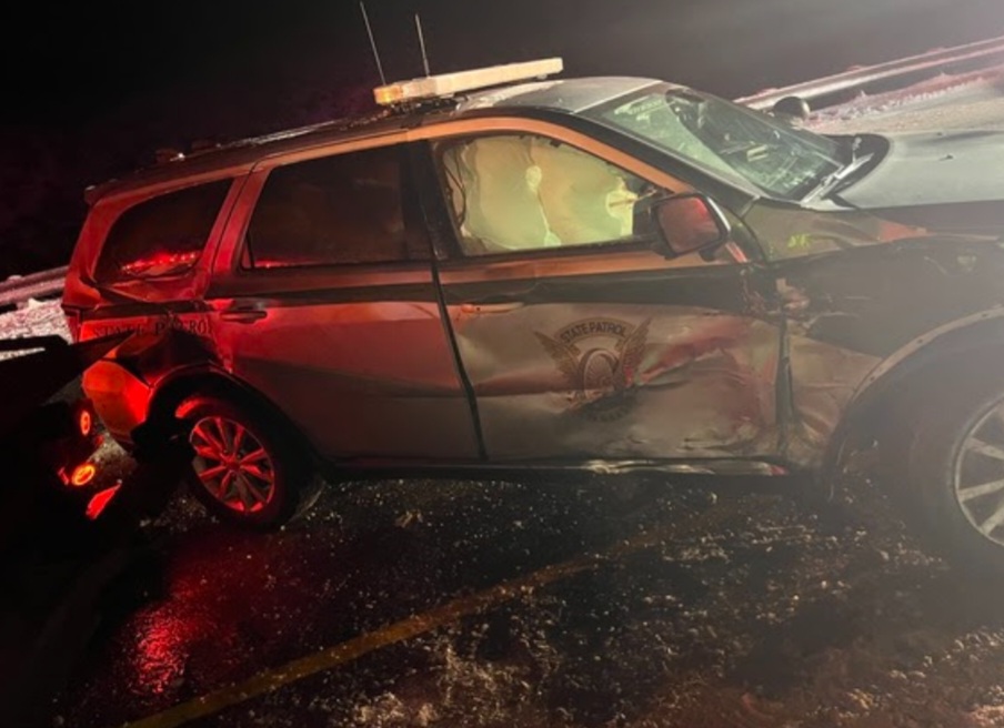 While the Trooper was on scene investigating the tow truck and Ford F250 crash, the Trooper’s patrol vehicle was struck by a Jeep. The tow truck driver was pinned between the tow truck bed and the patrol vehicle. The Trooper was able to move before being struck.