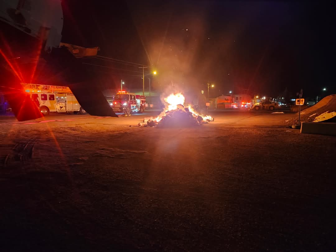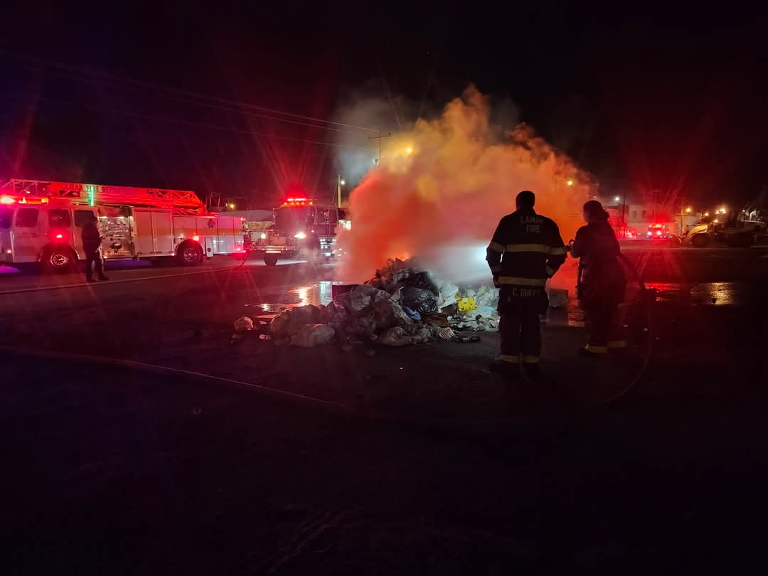 (January 15, 2025) Early this morning, the City of Lamar's commercial refuse collection truck operator was early in his weekly Wednesday route when he realized that the contents of the truck were on fire. He quickly called the Lamar Fire Department and safely dumped the load in a vacant lot on West Hickory Street.