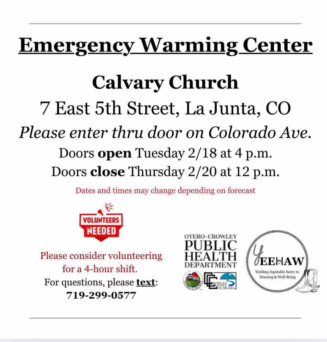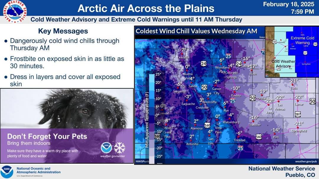 Description: The National Weather Service Office of Pueblo has Issued an Extreme Cold Warning for much of Southeast Colorado for Feb. 19 2025... Several school districts have announced delays... This Article is Sponsored by H&R Block of La Junta and Lamar, the Colorado Low-Income Energy Assistance Program (LEAP) and Ryon Medical... Closures and Delays Posted as Reported...