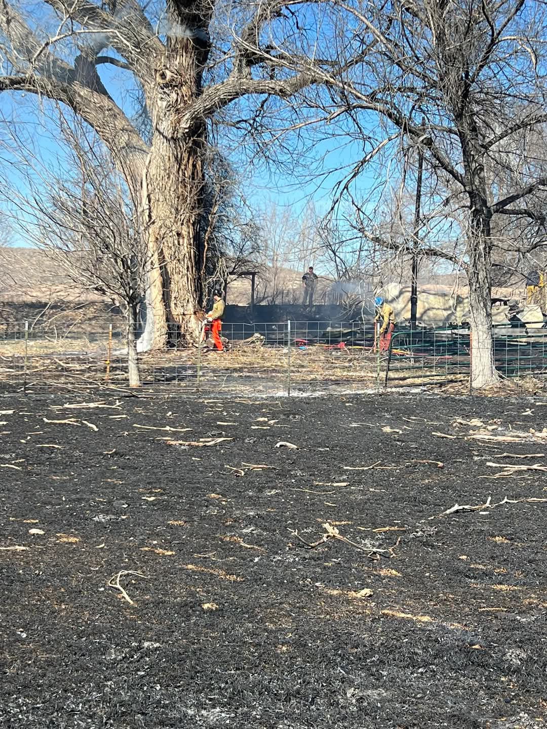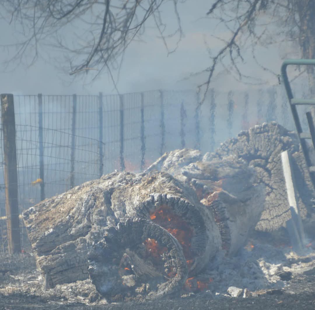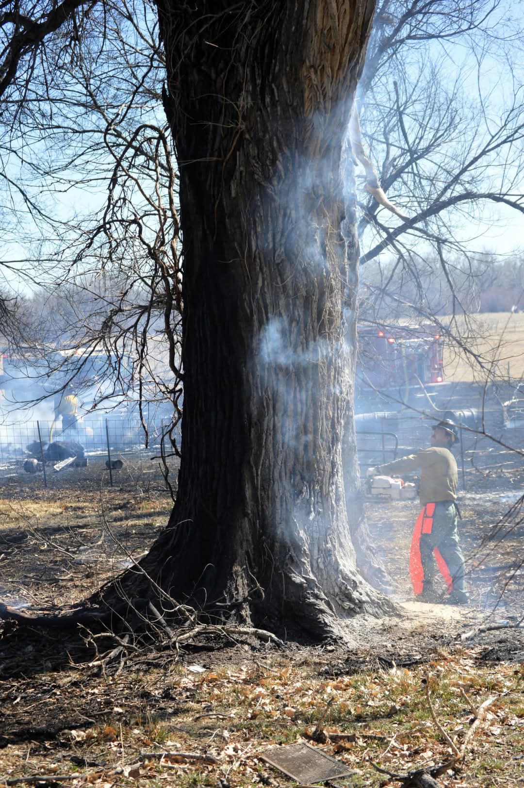A very large old cotton wood tree had also caught fire and was burning on the inside of tree.