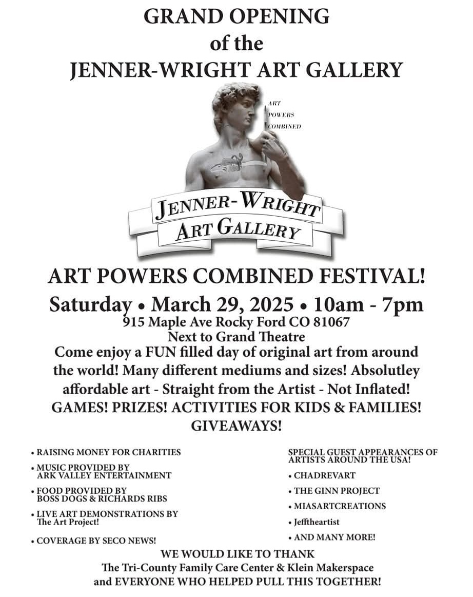 Description: Join the People of Southeast Colorado for the Grand Opening of Rocky Ford's New Art Gallery at the Art Powers Combined Festival on March 29, 2025...