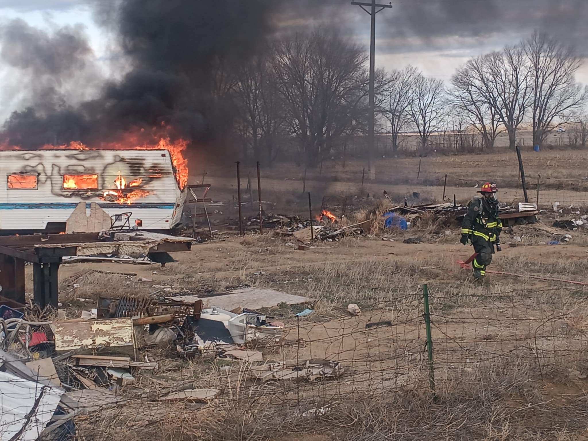Rocky Ford Fire Department was dispatched to the area of County Road 22 and Highway 266, otherwise known as the Campos Compound for a report of a camper on fire.