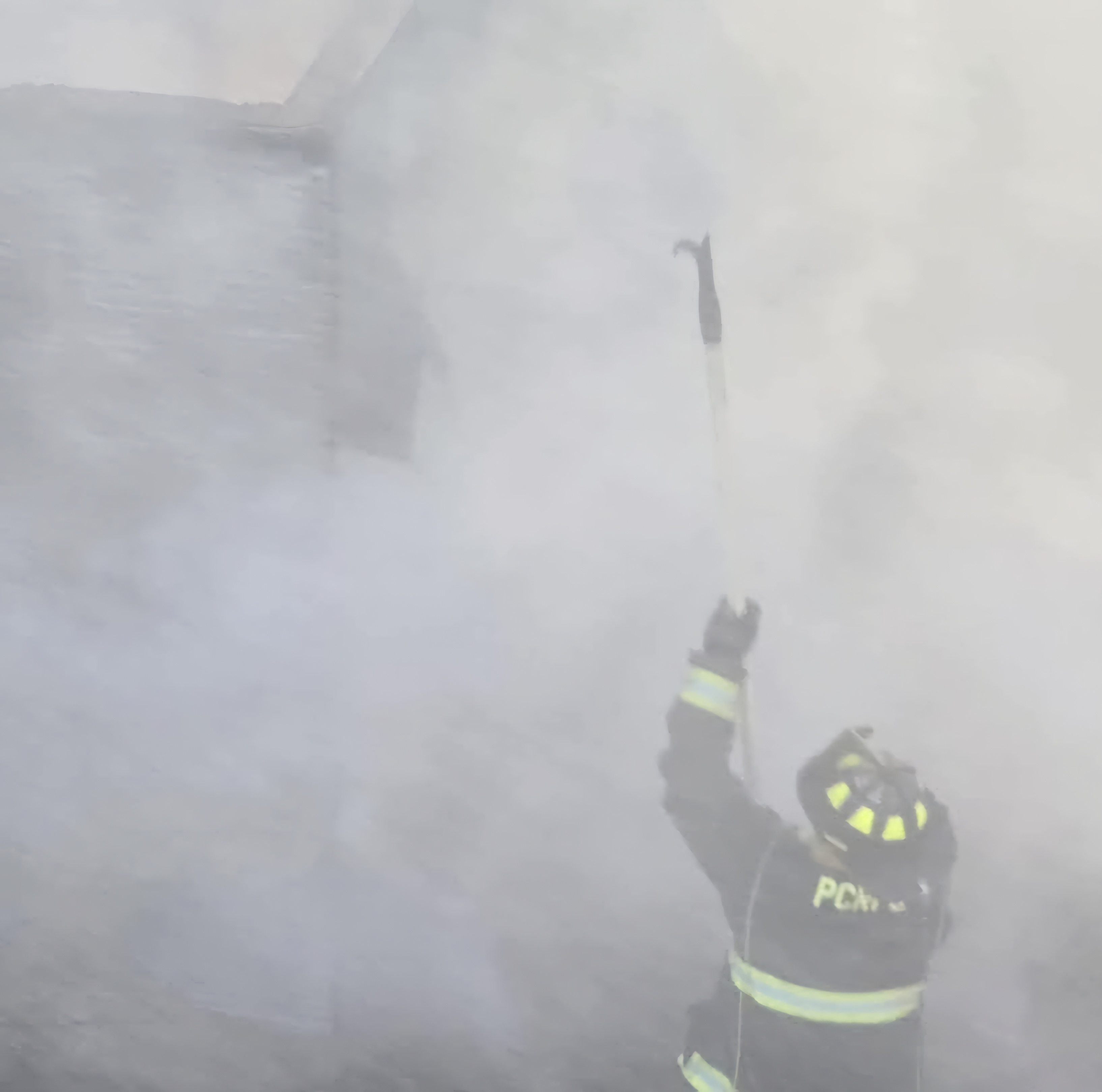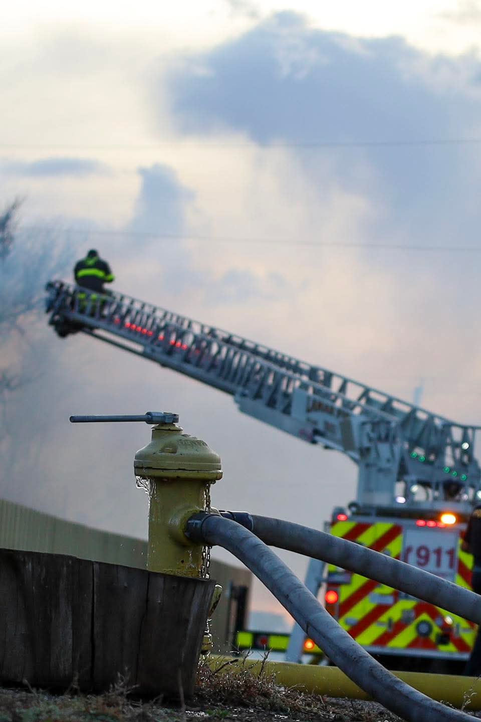 Engine 6 advanced 250’ of 5” LDH to the North side of the involved building and deployed two 1.75” pre connects.