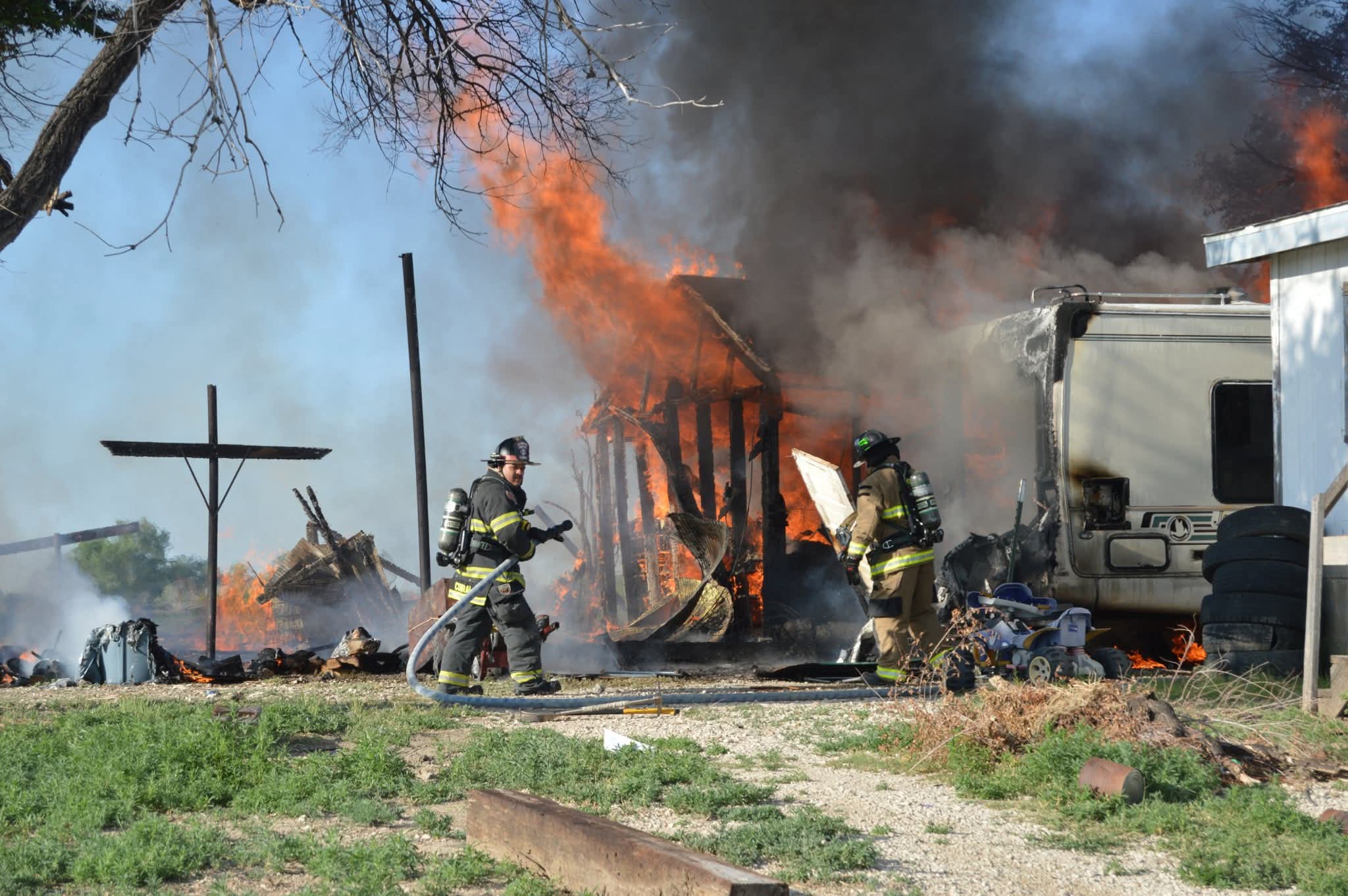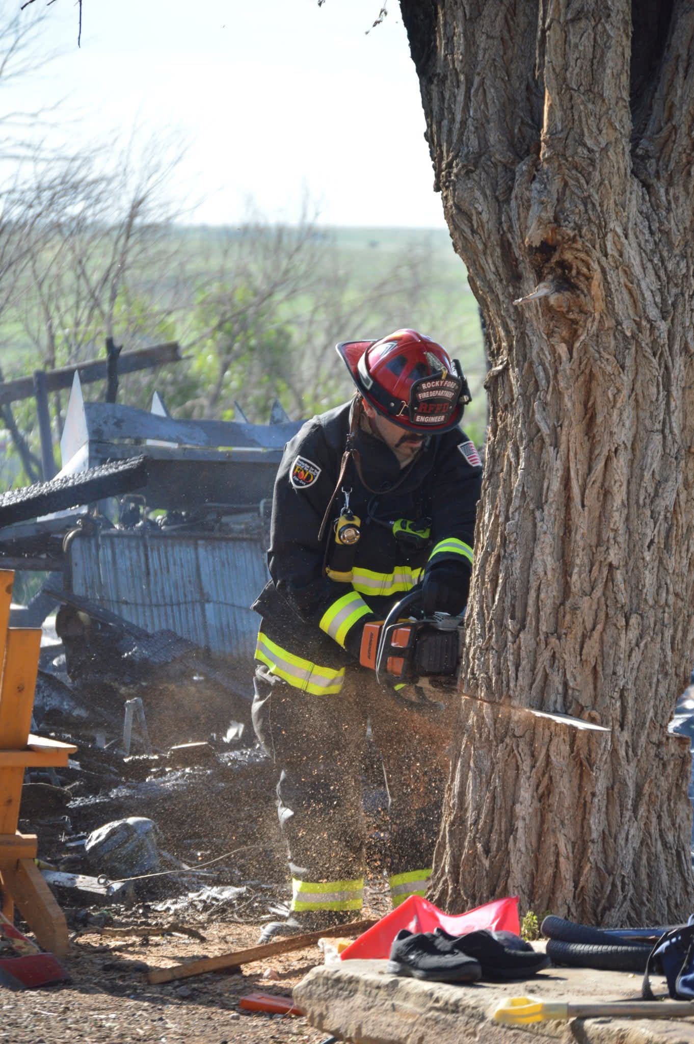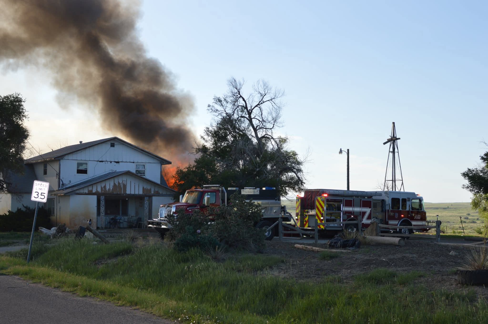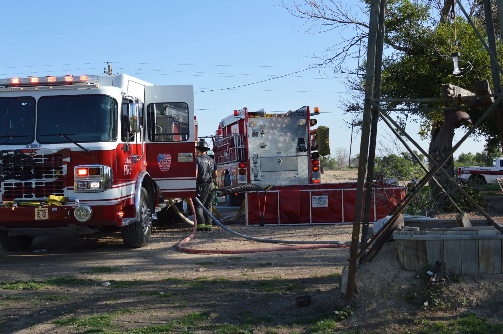 Crews pulled 2 hose lines for an aggressive attack to stop the spread of the fire and protect the house. Mutual aid was called from Rocky Ford Fire and Cheraw Fire for water tenders to help with water supply since there was not a close fire hydrant.
