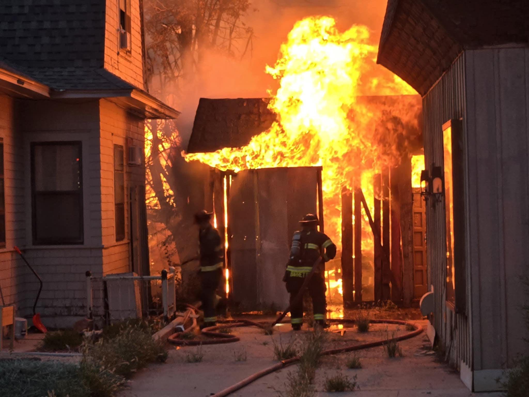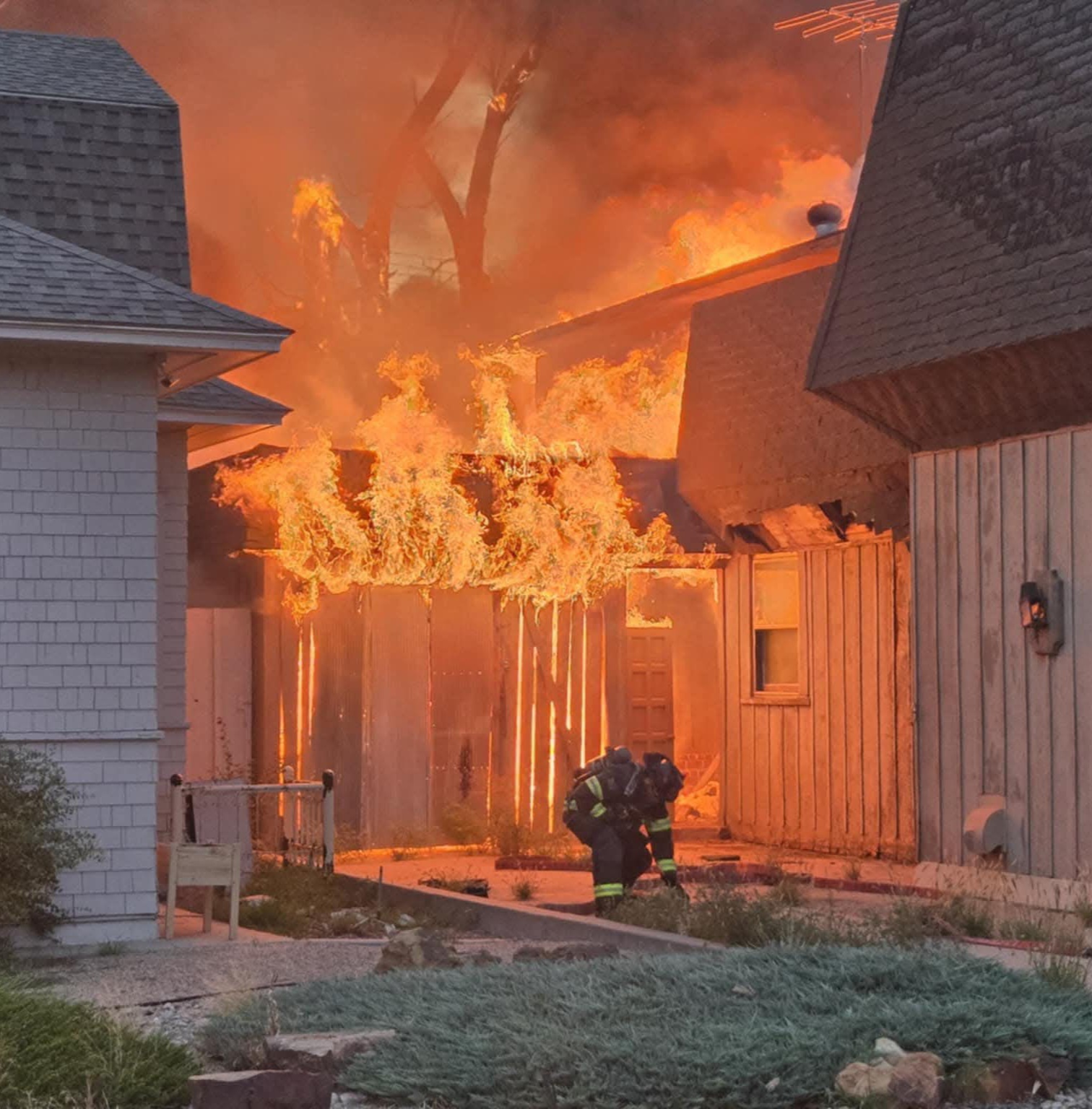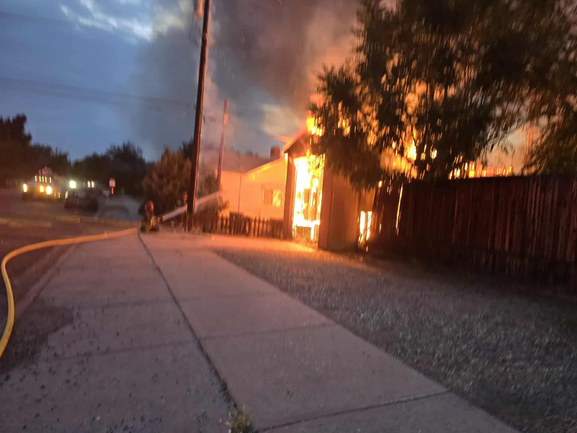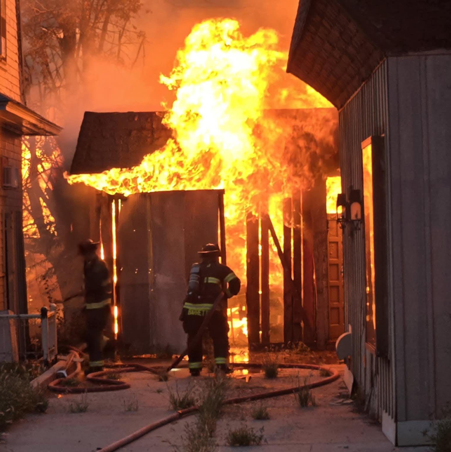 On September 4th at approx 710pm La Junta Fire was toned out for a reported tree on fire behind a house in the 600blk of Colorado. Engine 1 was already assisting our med unit on a medical a few blocks away with an uncooperative patient. Engine 1 arrived within 2 minutes and found a large fire behind 618 Colorado and a structure was on fire.