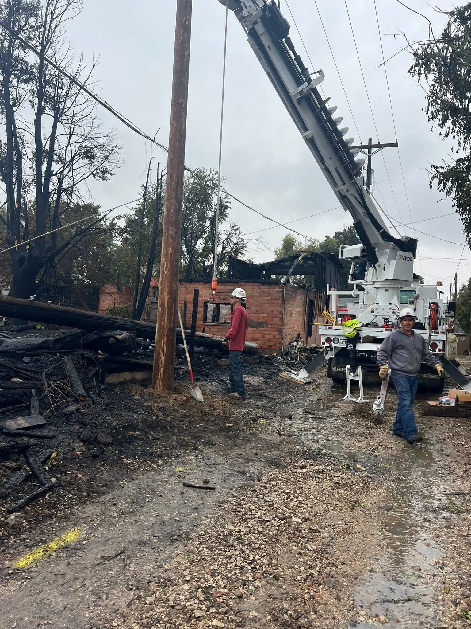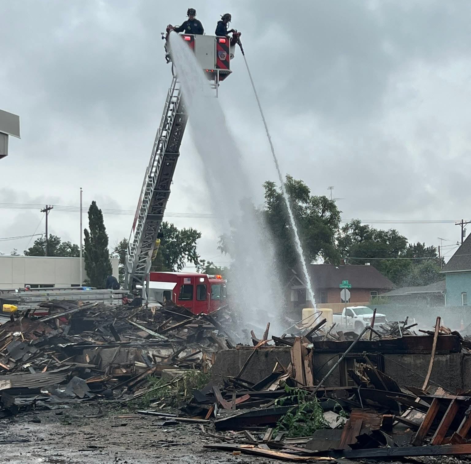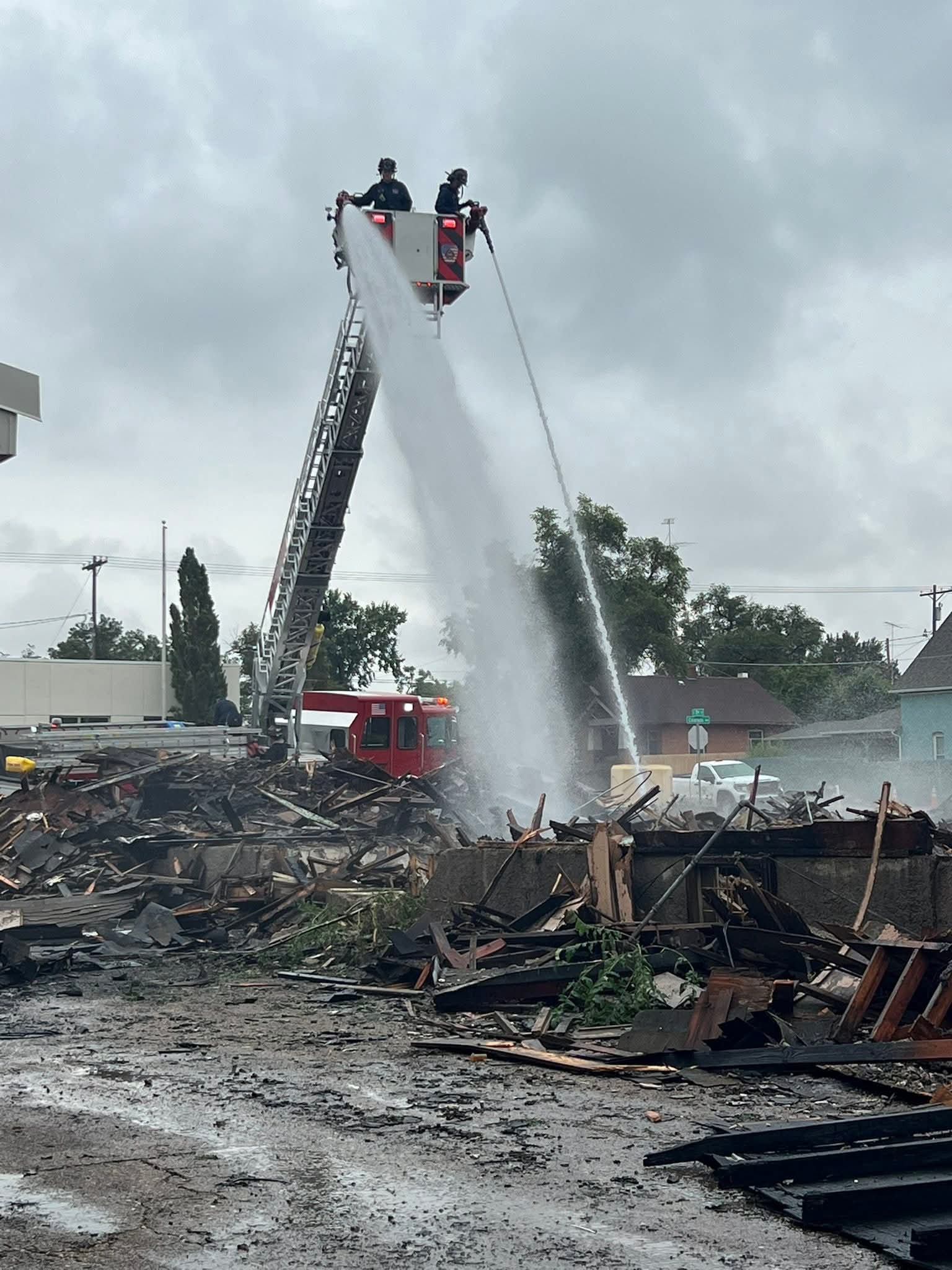 At day break, a excavator and crews from the City of La Junta Streets Dept was called into secure to help tear apart of the building so we could make sure the fire and hot spots were fully extinguished and the building would have been a unsafe risk for the community.
