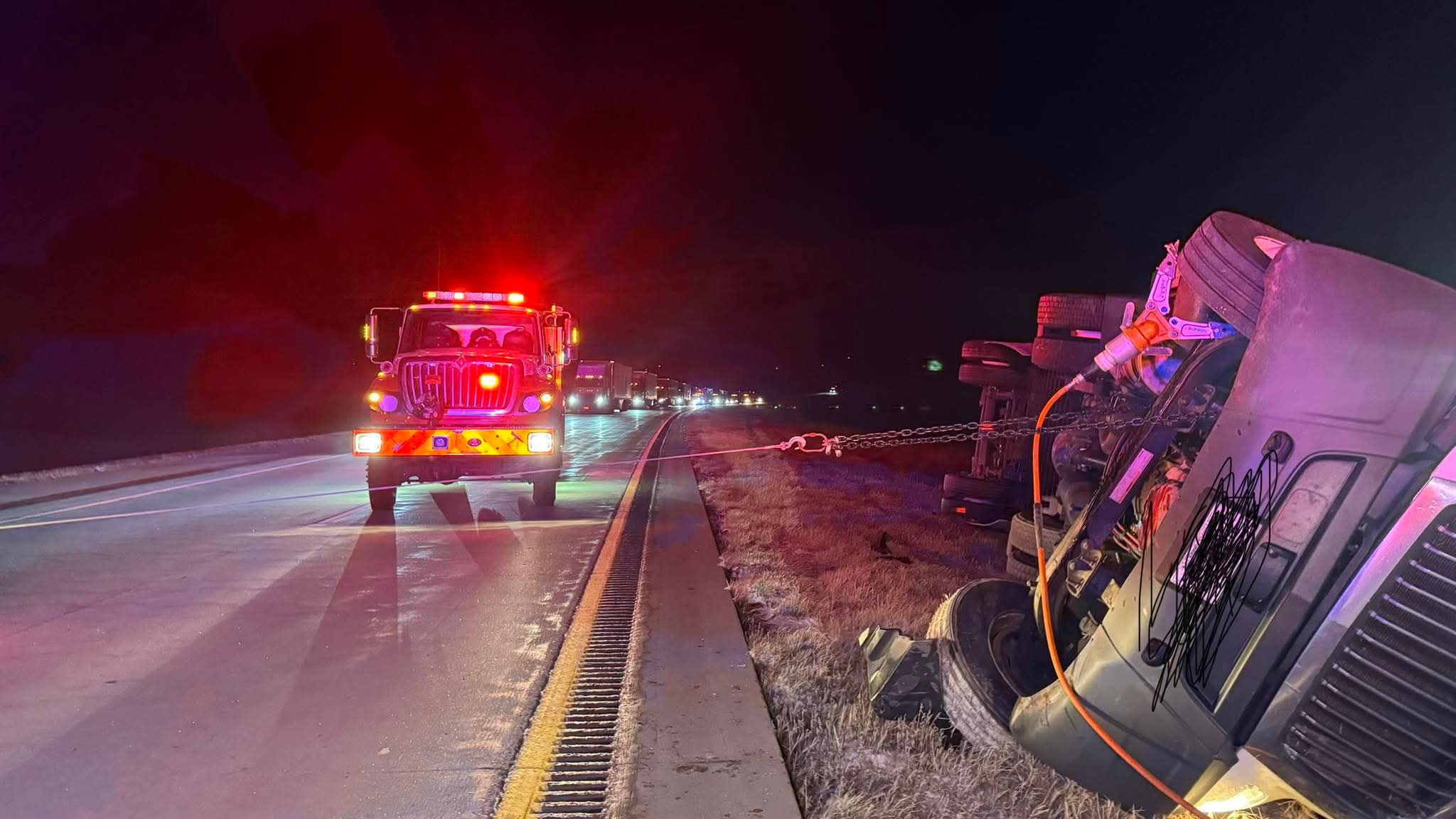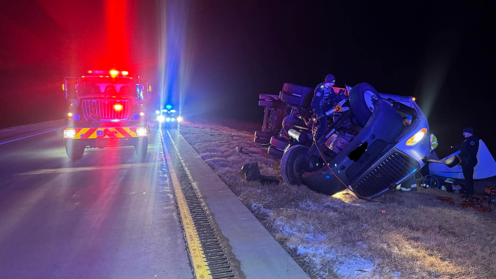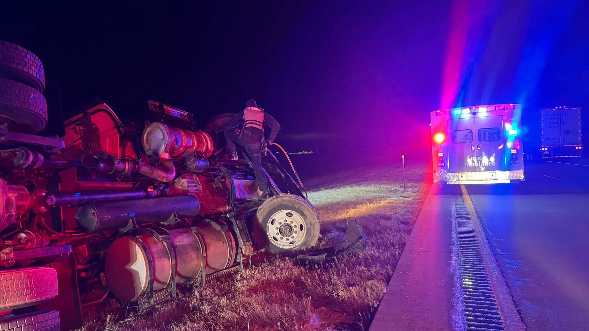 Semi Rollover on I-70 East of Limon: Limon Ambulance, Limon Fire, and Hugo Fire Complete Successful Rural Rescue