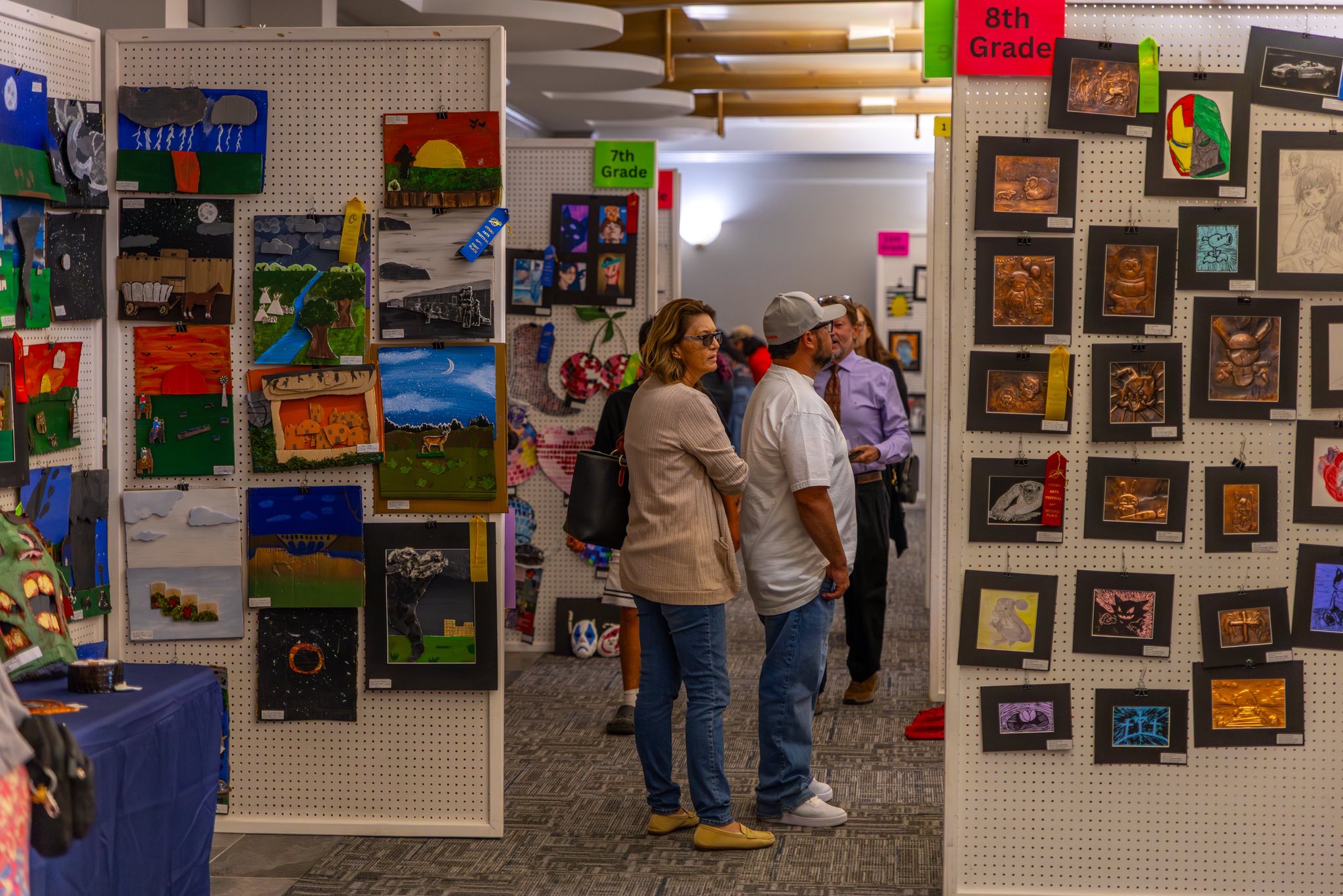Description: Photo Description: Community members peruse the art displayed during the Otero Arts Festival. Otero College’s 70th Arts Festival highlights student talent in writing, music, and visual arts, with winners announced from schools across Southeast Colorado.