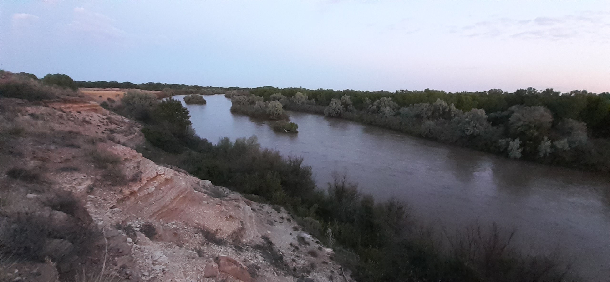 The shale hills run up to the river's edge, but the thicket of invasive tamarac and Russian Olive trees would make it difficult to find a good fishing spot.
