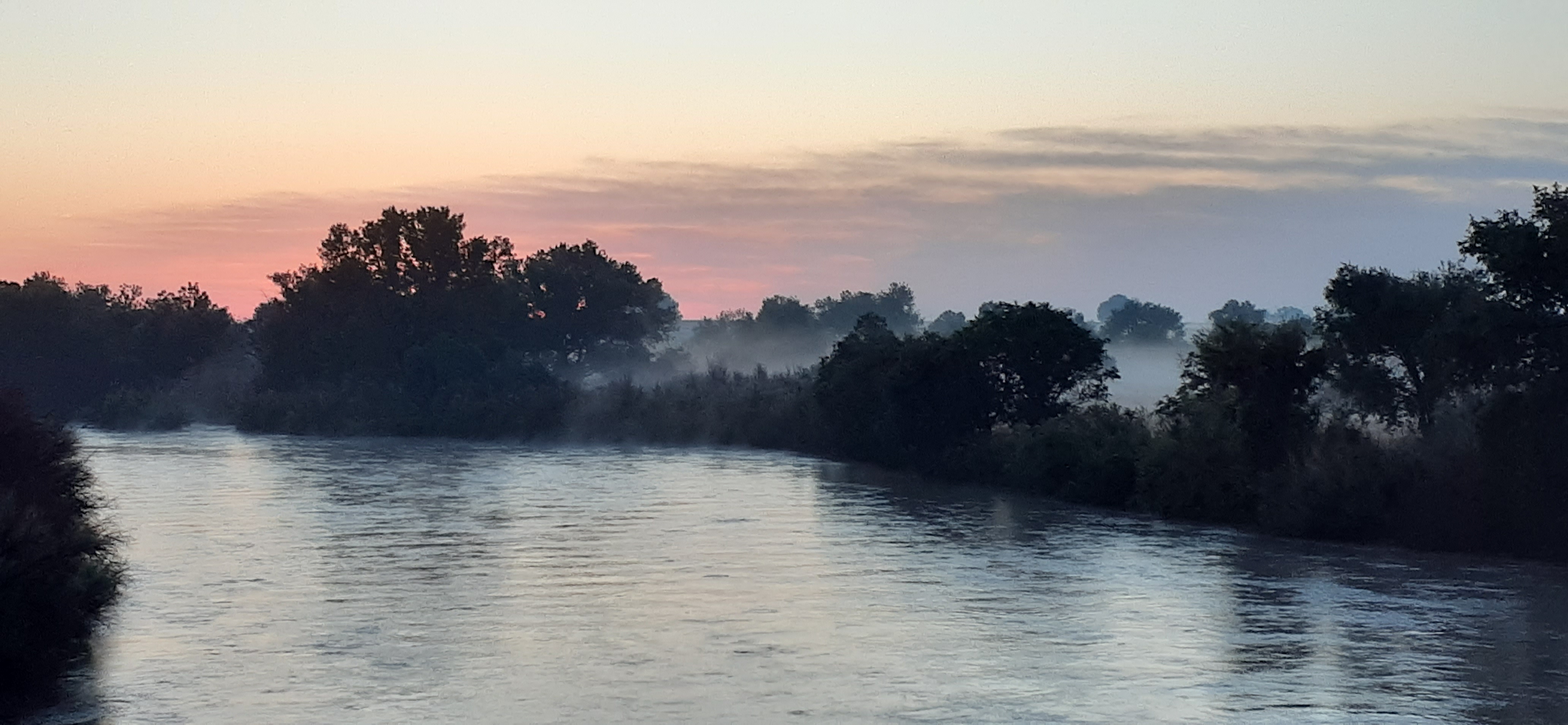 Foggy Summer Sunrise on the Arkansas River and Holbrook Lake