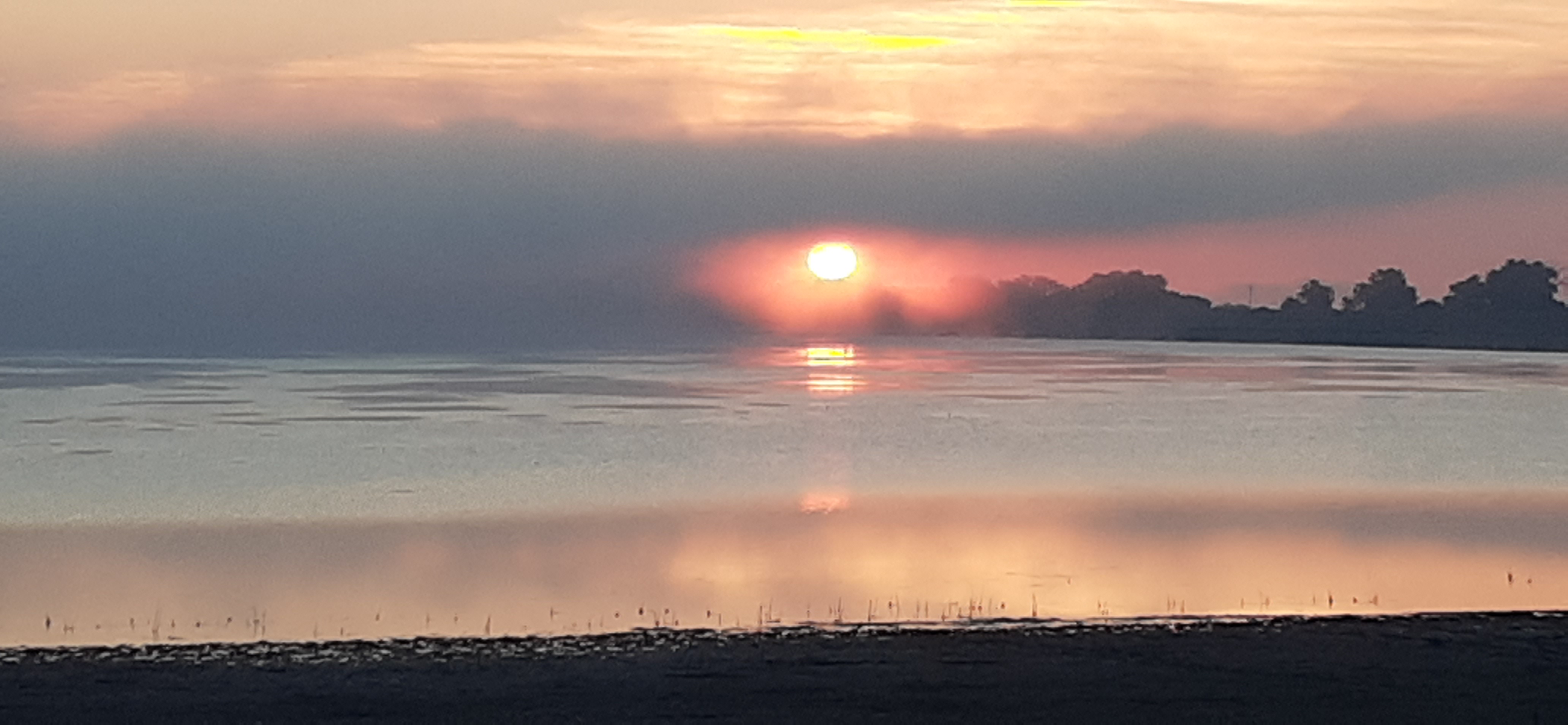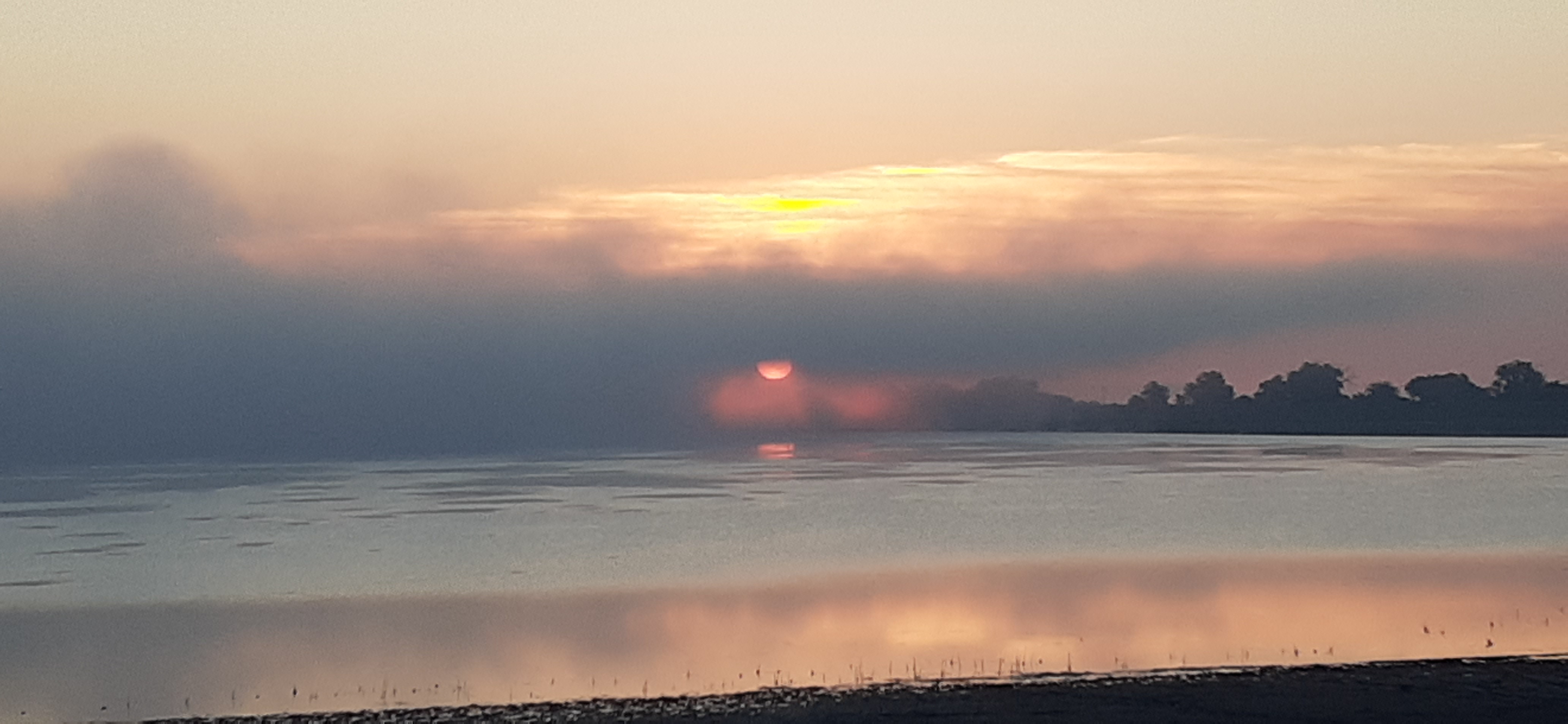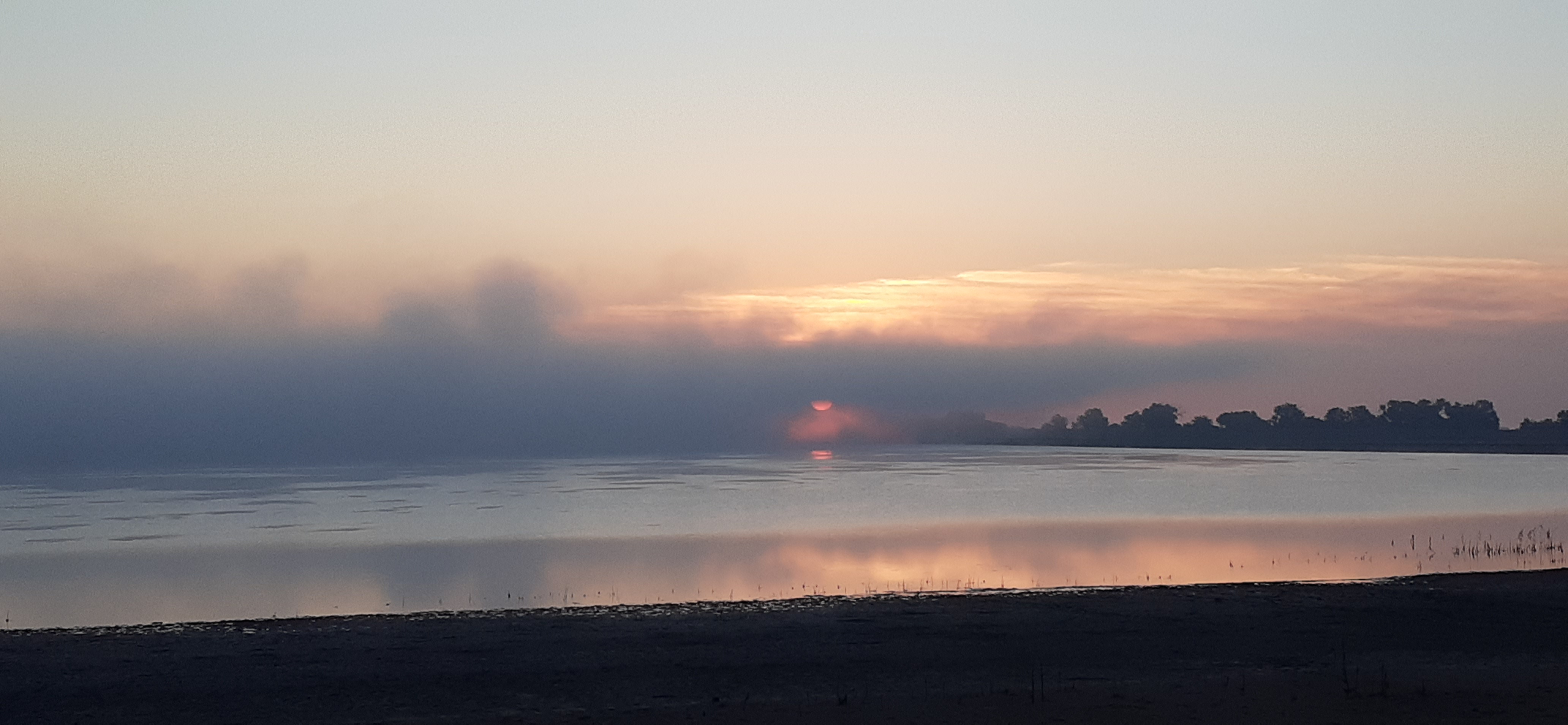 I expected a partially clouded sunrise over the low lake, instead I watched a fog shadowing the sunrise playout in a spectacular drama of moisture eclipsing the sun, then burning off of the prairie.