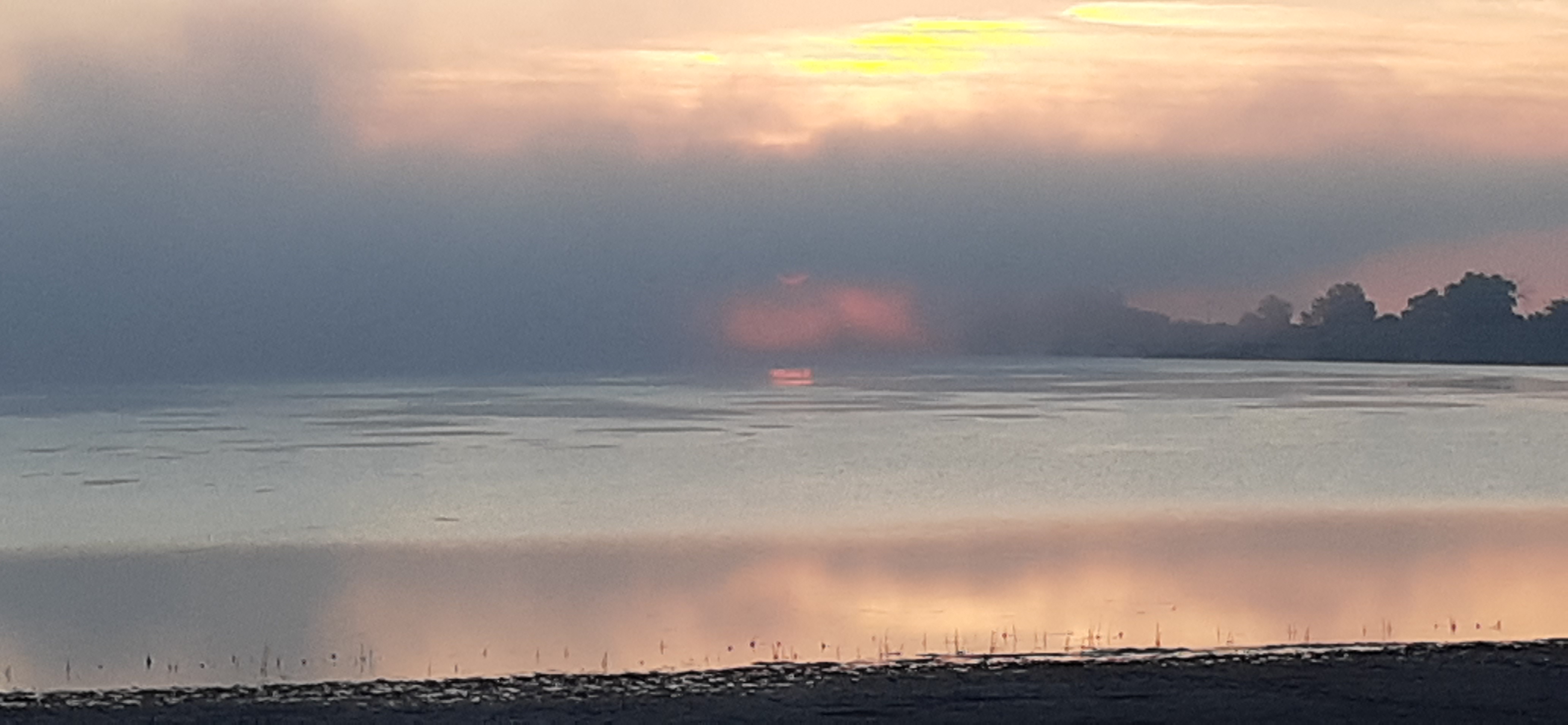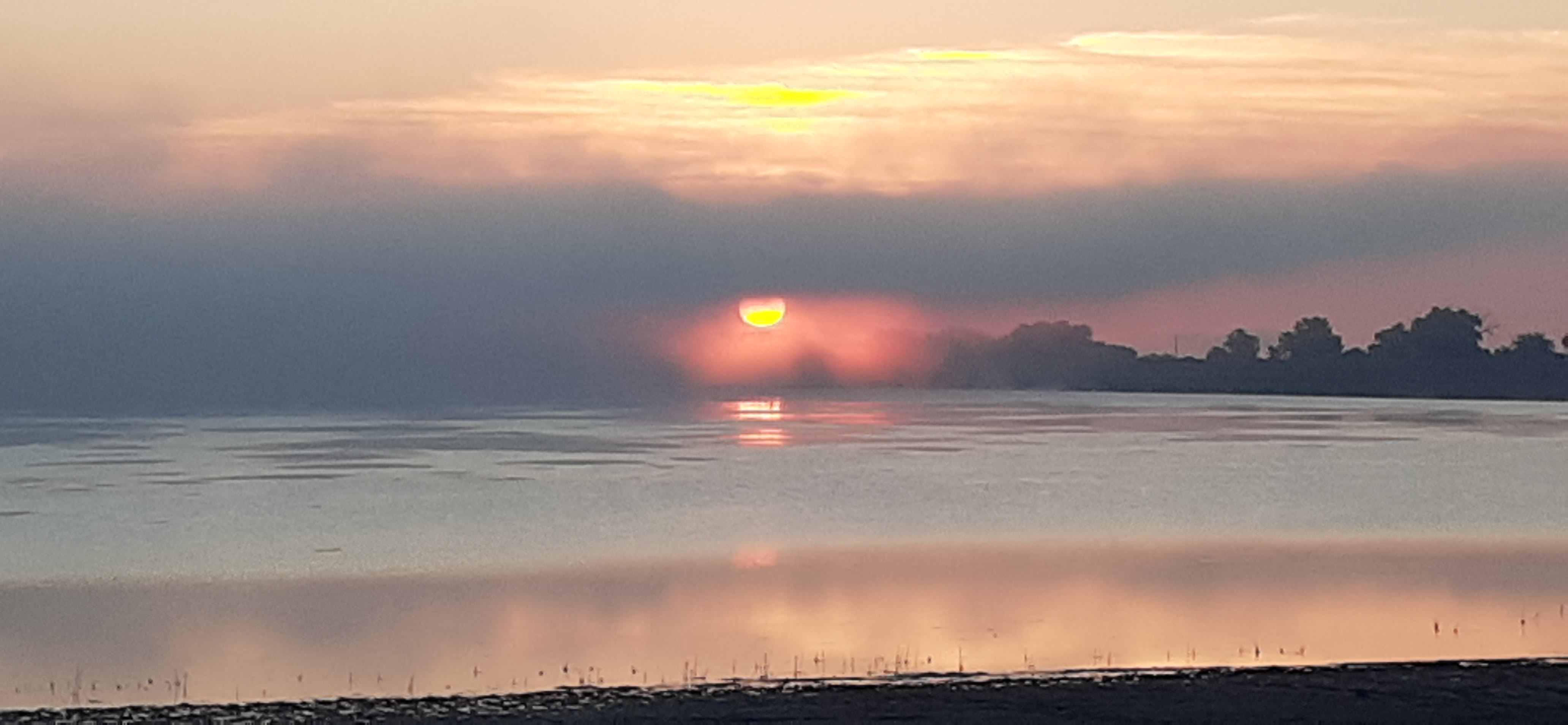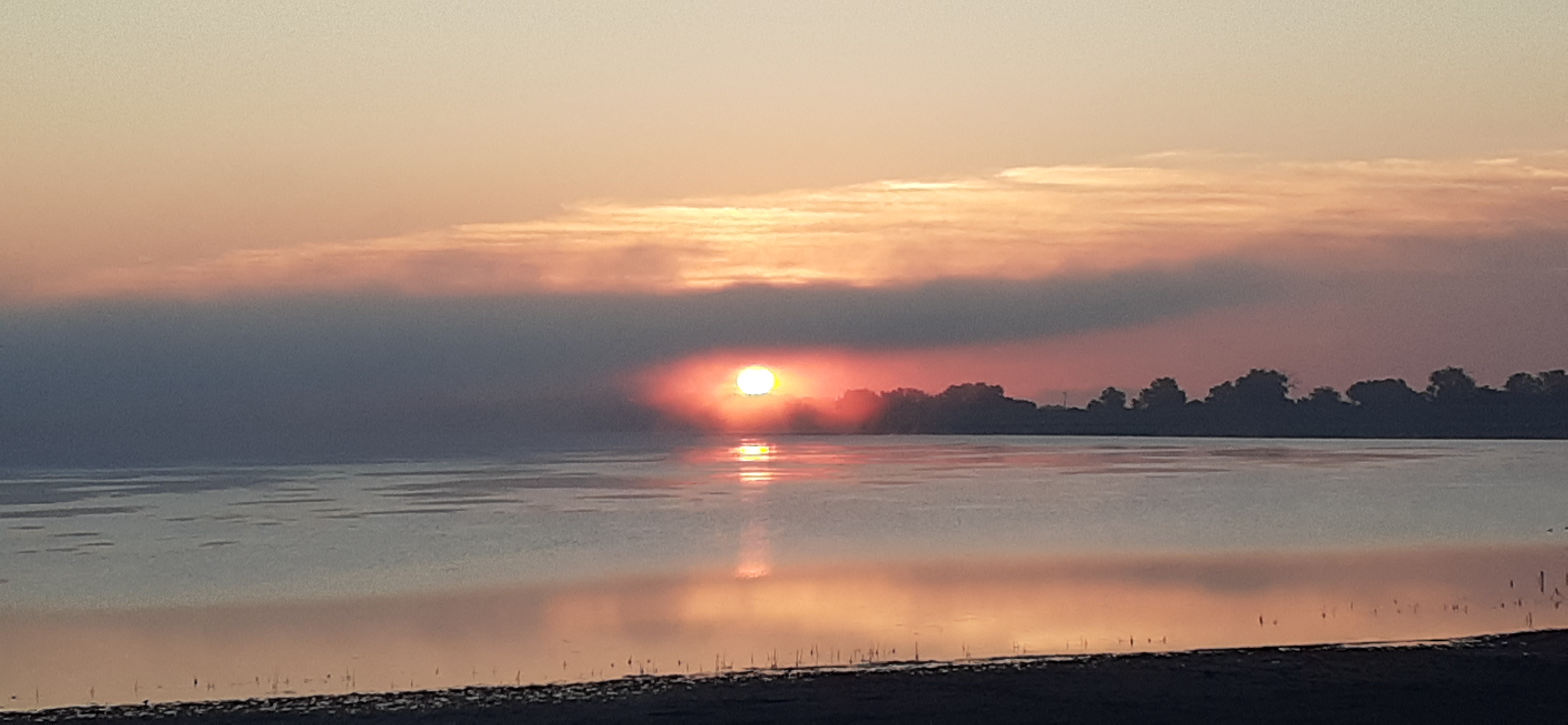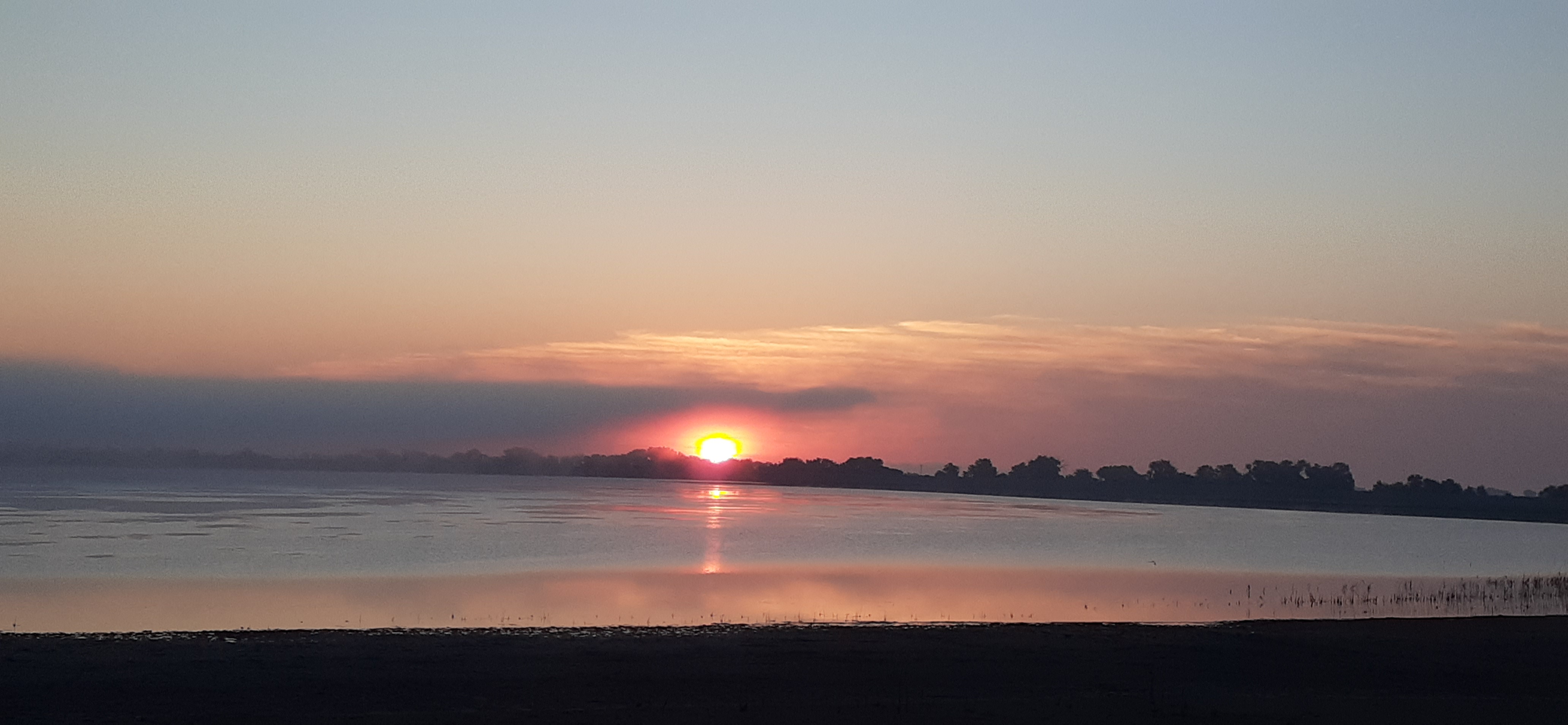 I expected a partially clouded sunrise over the low lake, instead I watched a fog shadowing the sunrise playout in a spectacular drama of moisture eclipsing the sun, then burning off of the prairie.