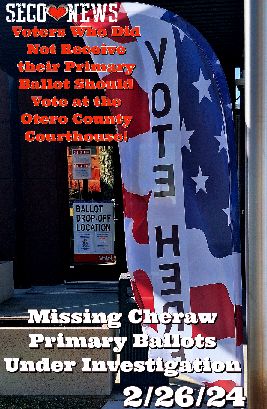 Otero Clerk Reports: Colorado Secretary of State and Post Office Investigating Missing Cheraw Primary Ballots According the Otero County Clerk Lyn Scott, she has contacted both the Colorado Secretary of State and the Post Office regarding missing ...