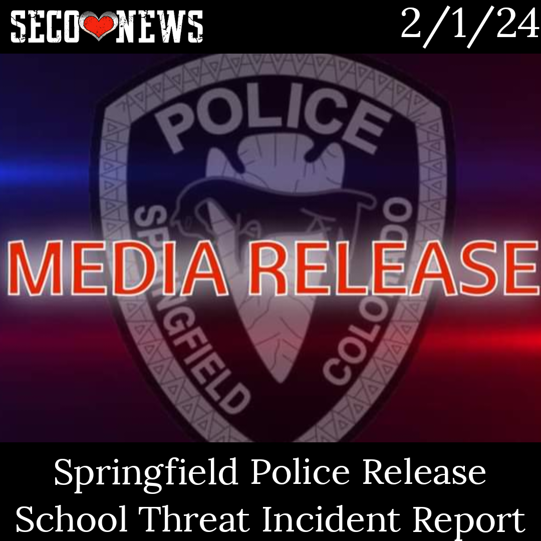 Springfield Police Release School Threat Incident Report -02/01/2024 SCHOOL INCIDENT--SPD INFORMATION RELEASE- On 01/31/2024 around 10pm Springfield Police started getting notified from several concerned parents about a possible threat to the scho...