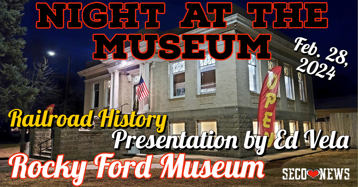 Rocky Ford Night at The Museum Feb. 28, 2024 Our next speaker for the Night at the Museum is: Who: Ed Vela, Railroad Historian What: An Over View of the Railroad History and its impact on the lower Arkansas River Valley Where: Rocky Ford Museum, R...