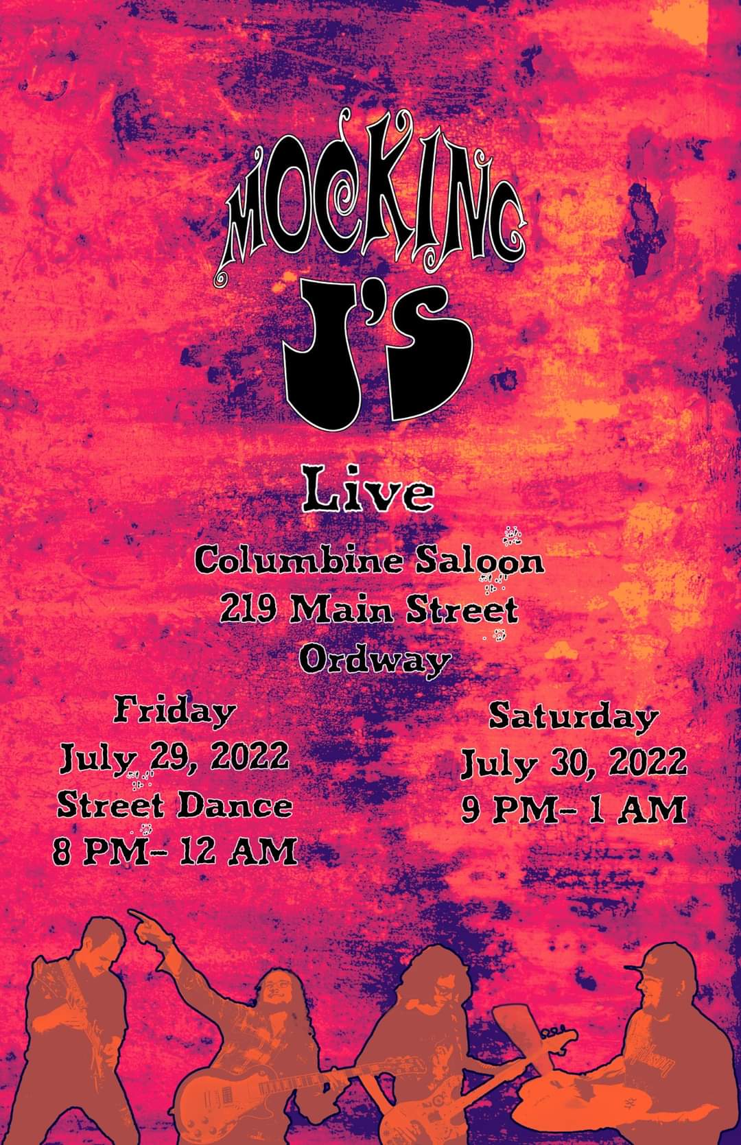 LIVE at Columbine Saloon! Friday, July 29th Street Dance 8am-12midight 2nd Performance! Saturday, July 30th 9pm - 1am The Columbine Saloon is Located at 219 Main St. in Ordway, Colorado
