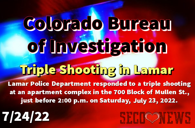 Lamar Police Investigate Triple Shooting July 24, 2022 – CBI – Lamar, CO – Members of the Lamar Police Department responded to a triple shooting at an apartment complex in the 700 Block of Mullen St., just before 2:00 p.m. on Sat...