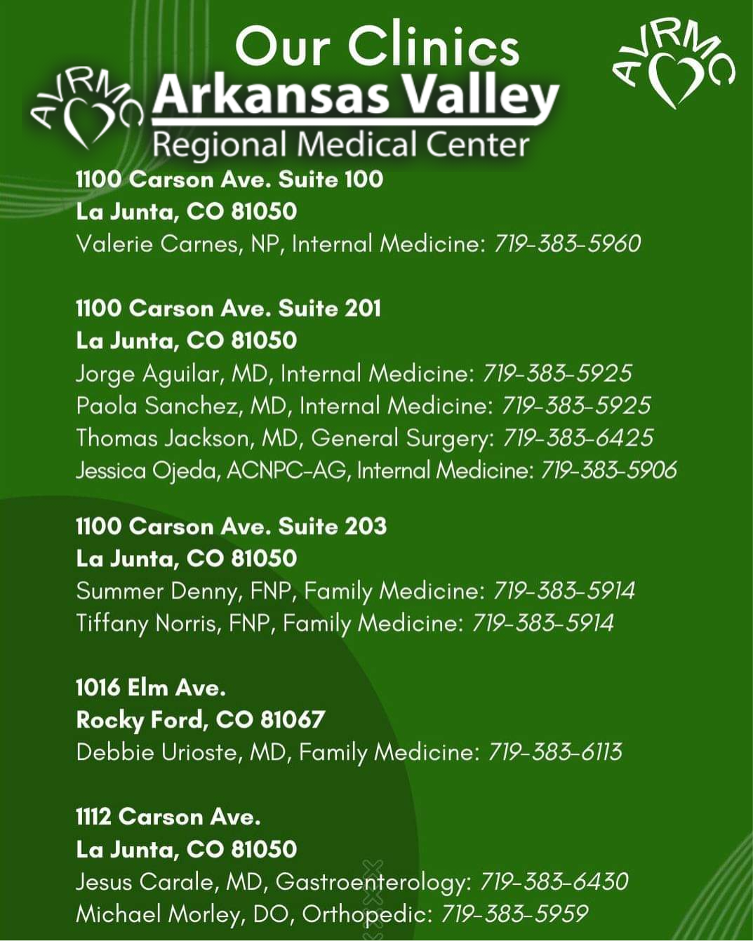 AVRMC is Located at 1100 Carson Ave. in La Junta, Colorado