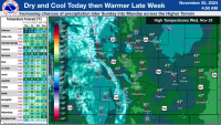 Today Sunny, with a high near 69. West wind 10 to 15 mph. Tonight Mostly clear, with a low around 27. West wind around 5 mph. Friday Sunny, with a high near 57. North wind 5 to 15 mph becoming south southeast in the afternoon. Friday Night Mostly ...