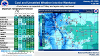 Today Sunny, with a high near 63. West wind 10 to 15 mph becoming northeast in the afternoon. Tonight Mostly clear, with a low around 27. East northeast wind around 5 mph becoming calm in the evening. Friday Partly sunny, with a high near 58. East...