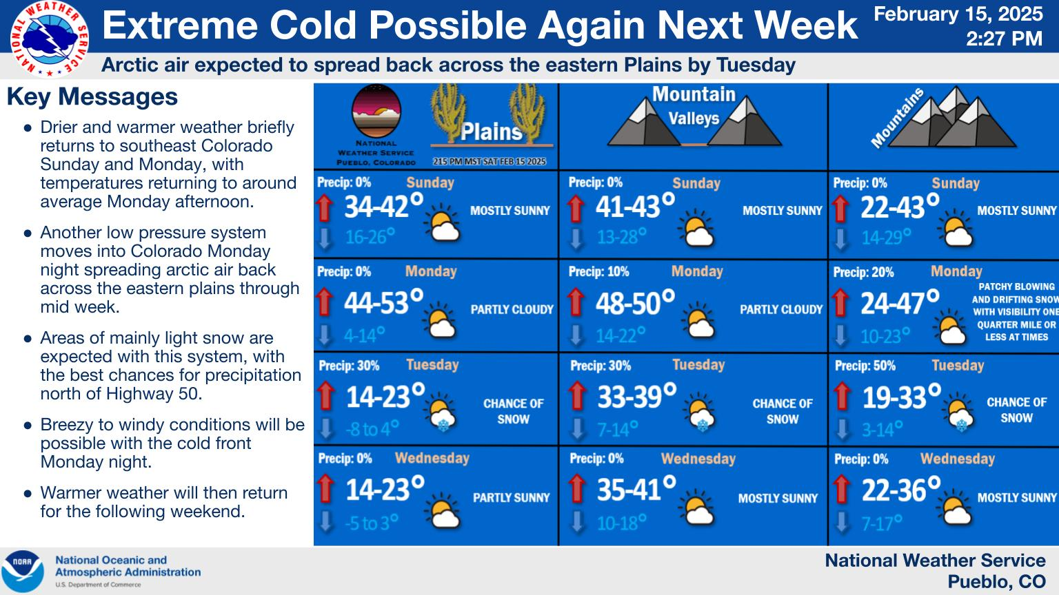 Southeast Colorado 7 Day Forecast Feb 15th- 22nd 2025
