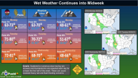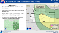 Monday A 20 percent chance of showers and thunderstorms after 11am. Partly sunny, with a high near 75. Northeast wind 5 to 15 mph becoming south in the afternoon. New rainfall amounts of less than a tenth of an inch, except higher amounts possible...