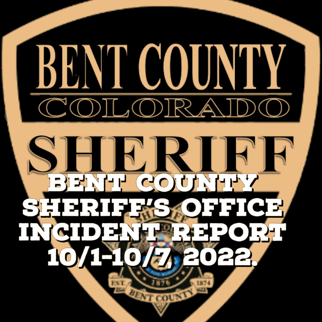 Bent County Sheriff Weekly Incident Report 10/1-10/7, 2022