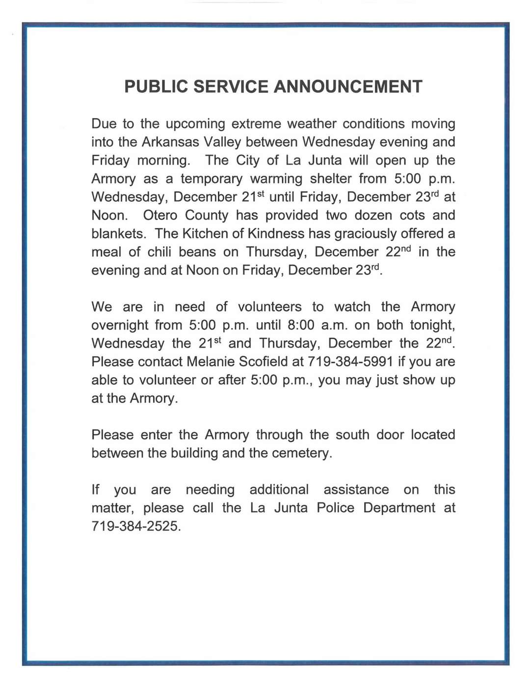 NATIONAL WEATHER SERVICE PUEBLO CO 1201 PM MST THU DEC 22 2022 ...MINIMUM WIND CHILL REPORTS... LOCATION WC TEMP. TIME/DATE ...COLORADO... ...BACA COUNTY... 8 S SPRINGFIELD -33 F 0856 AM 12/22 ...EL PASO COUNTY... CALHAN -48 F 0735 AM 12/22 COLORA...