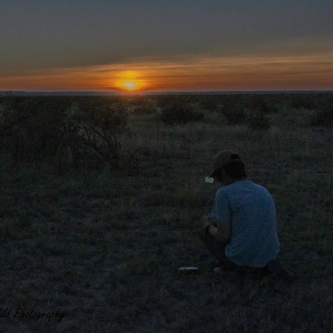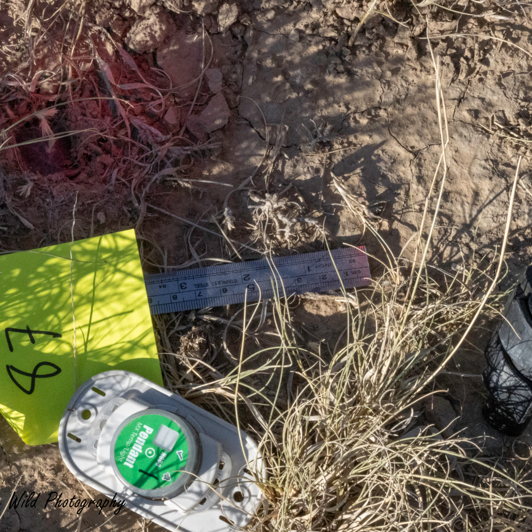 He noted that the spiderlings had come out of a burrow that he didn’t even have marked. He has 152 burrows marked, with various colored ribbons signifying if he’d checked them in the morning or evening, or if he’d seen an egg sac present. He’s found 19 egg sacs. There are Go Pro cameras set at some of the burrows, that take photos every minute to check on the status of the egg sacs. The cameras have about two and a half hours of battery life, so he has started spending nights out there on the prairie, making sure the batteries are fresh, and, of course, checking for spiderlings. He also has thermometers by the burrows to record the temperature, as well as small rulers. He’s careful not to disturb the burrows too often, so it’s important that he includes the times he’s checked the burrows in his notes.