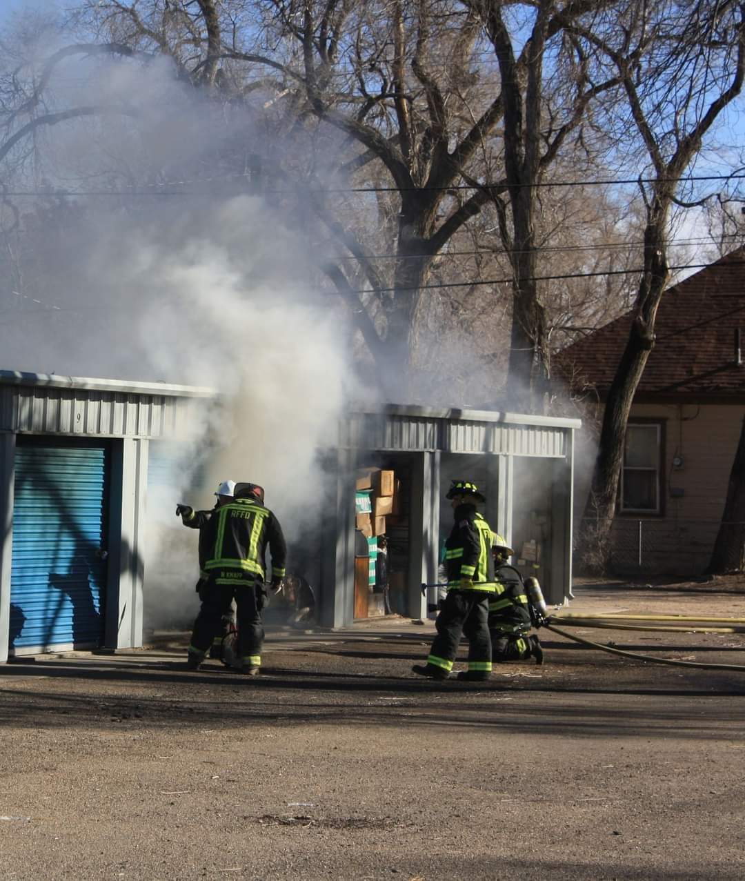 We requested mutual aid from Manzanola, La Junta, DFPC Engine 34, and Fowler. Forcible entry was initiated to storage units.
