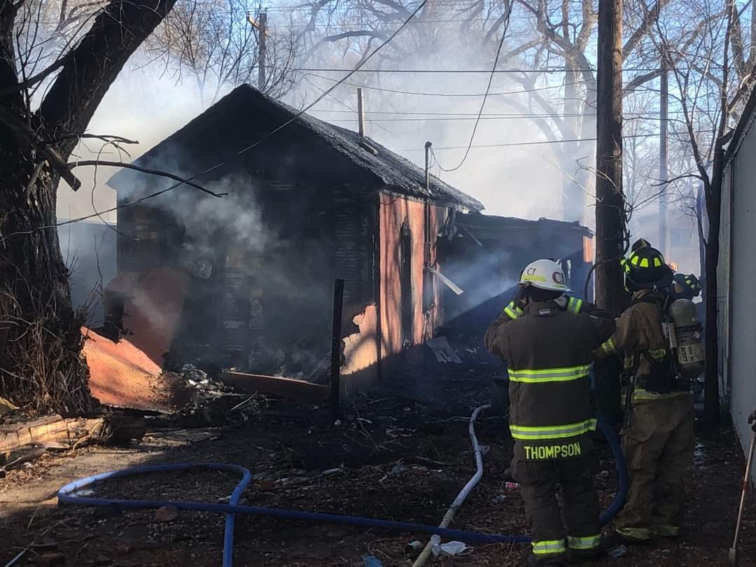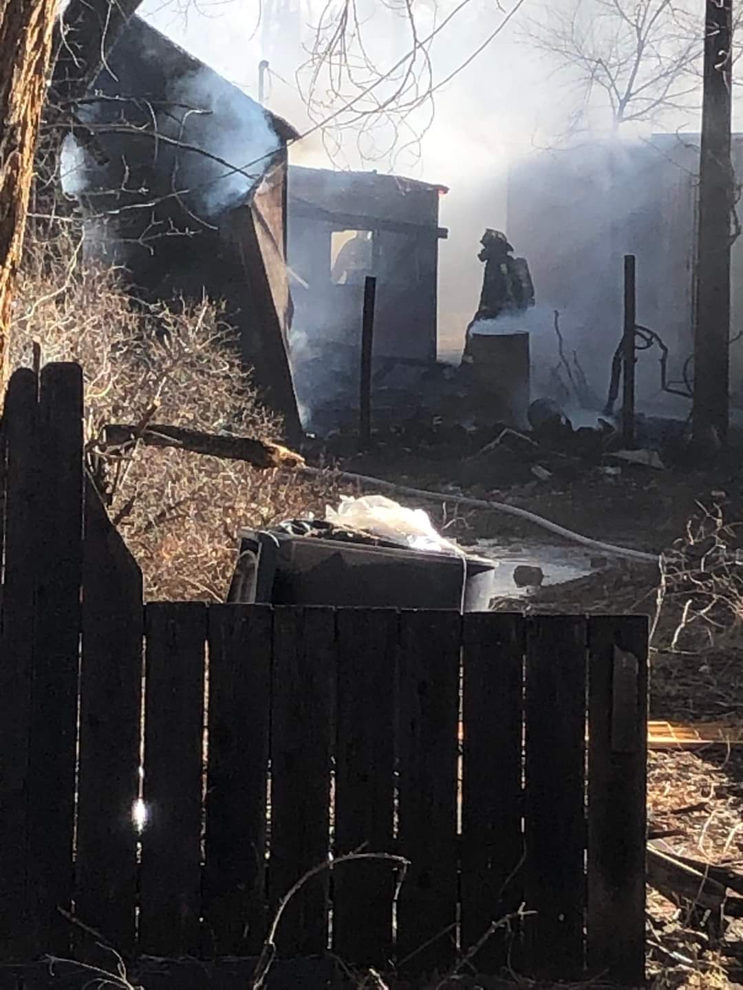 Upon arrival we found the front of the abandoned structure fully engulfed with exposure fires and heavy smoke to adjacent storage units and a grass fire across alley with wind speeds exceeding 30mph.