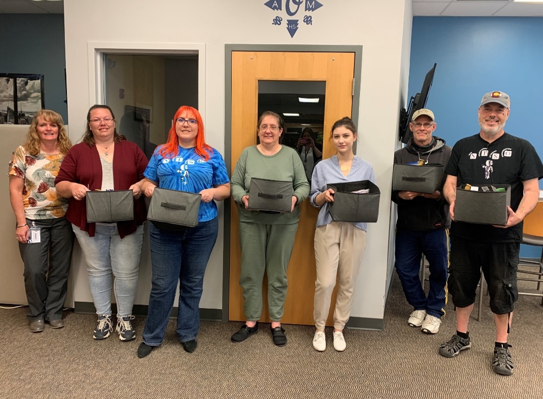 NTSO Members pictured with frontline worker baskets (l-r): Shawn Japhet (Sponsor), Rachelle Martin, Amber Kreft, Jennifer Logan, Nina Kulbaeva, Larry Bucy, and Wade Sellers.