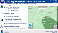 Monday A 20 percent chance of showers and thunderstorms after 11am. Partly sunny, with a high near 75. Northeast wind 5 to 15 mph becoming south in the afternoon. New rainfall amounts of less than a tenth of an inch, except higher amounts possible...