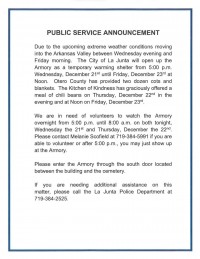 NATIONAL WEATHER SERVICE PUEBLO CO 1201 PM MST THU DEC 22 2022 ...MINIMUM WIND CHILL REPORTS... LOCATION WC TEMP. TIME/DATE ...COLORADO... ...BACA COUNTY... 8 S SPRINGFIELD -33 F 0856 AM 12/22 ...EL PASO COUNTY... CALHAN -48 F 0735 AM 12/22 COLORA...