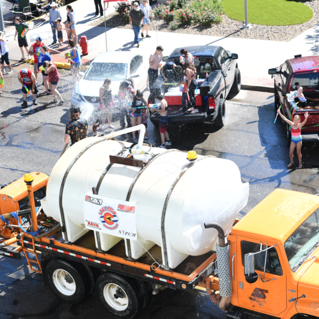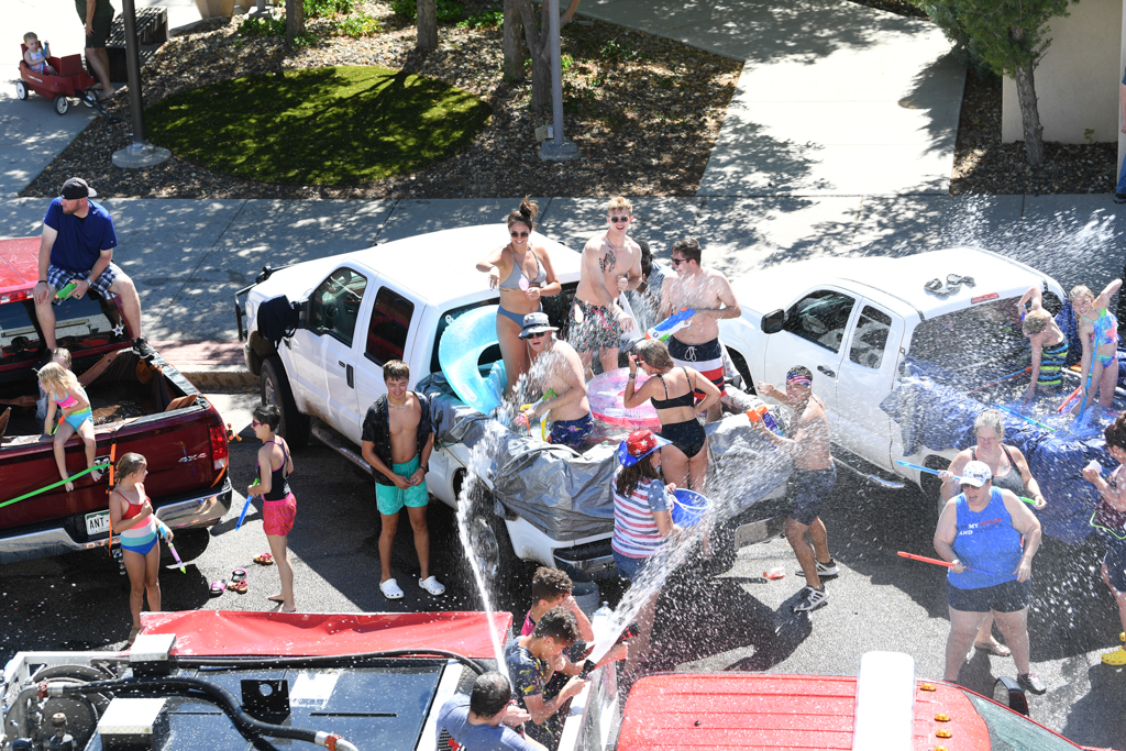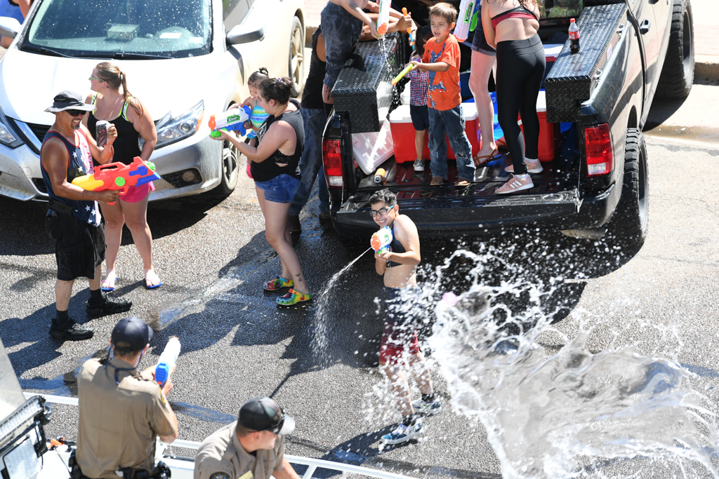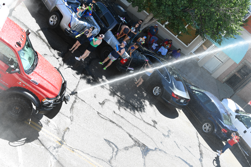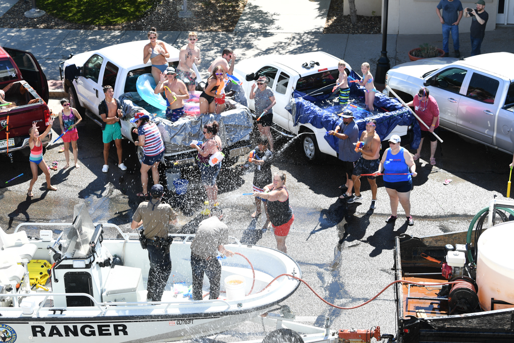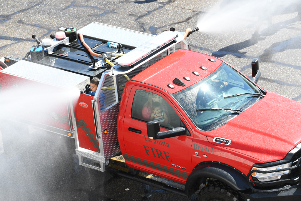 Due to current water restrictions, the La Junta Fire Department wasn't able to open the hydrant at 4th and Colorado like last year. However, The LJFD brought out the brush truck to spray down the locals.