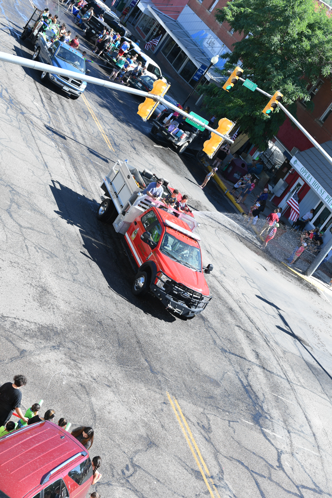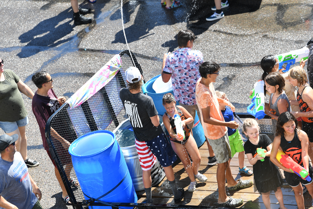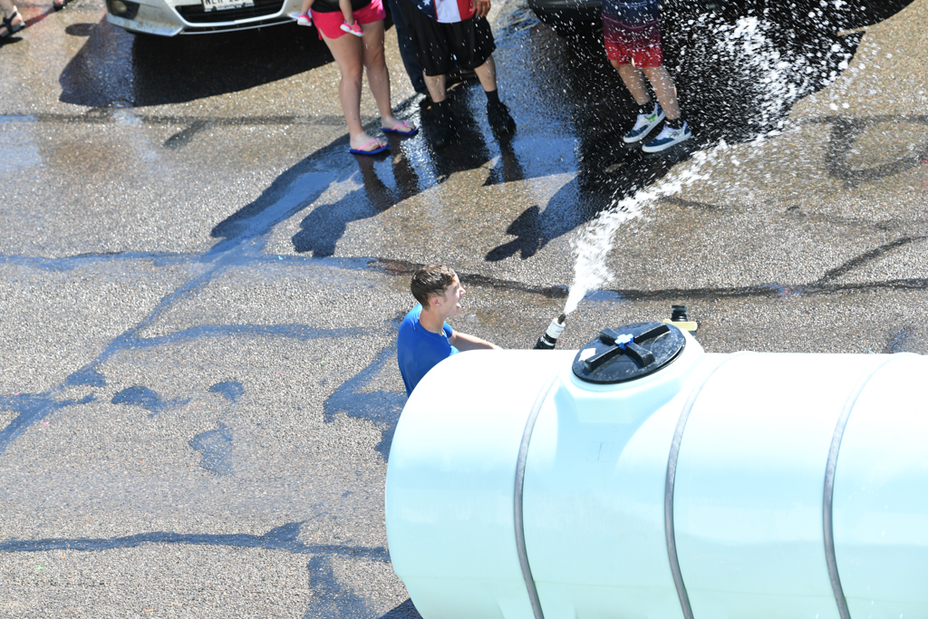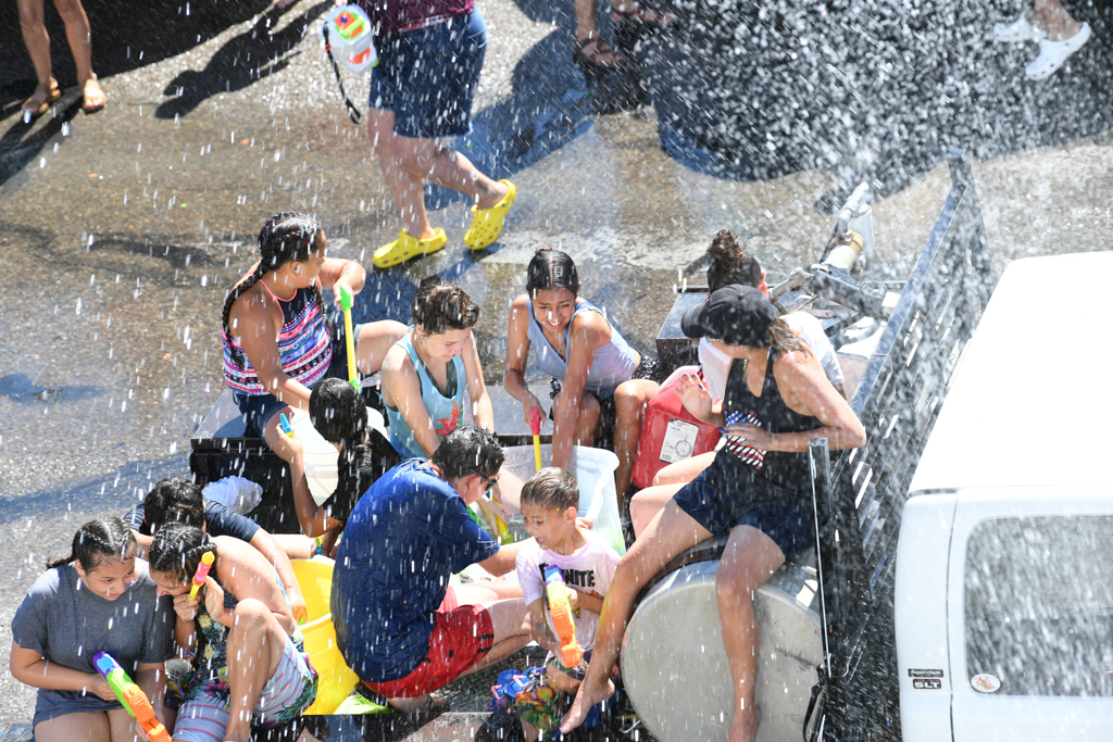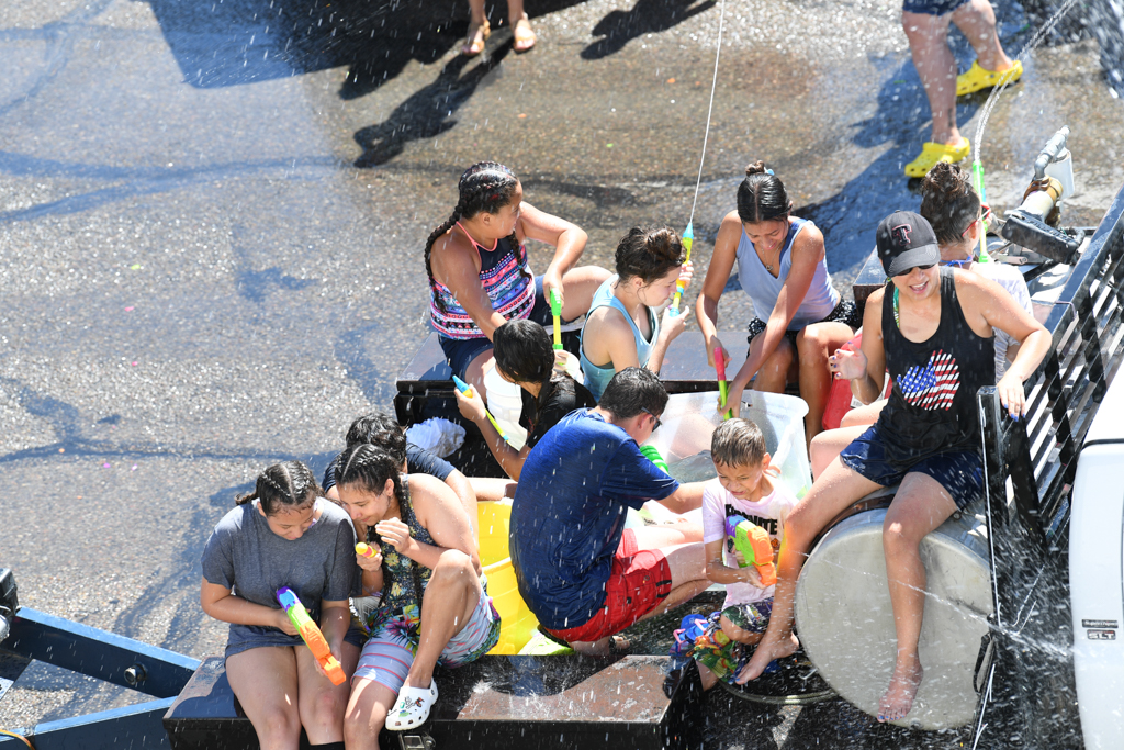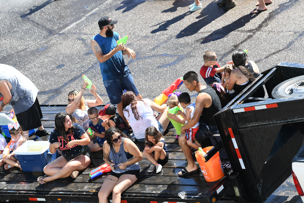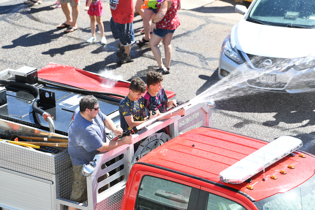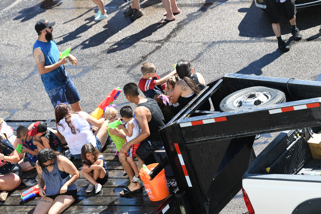 Due to current water restrictions, the La Junta Fire Department wasn't able to open the hydrant at 4th and Colorado like last year. However, The LJFD brought out the brush truck to spray down the locals.