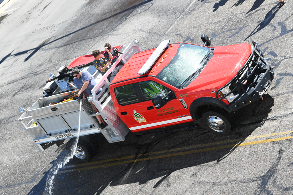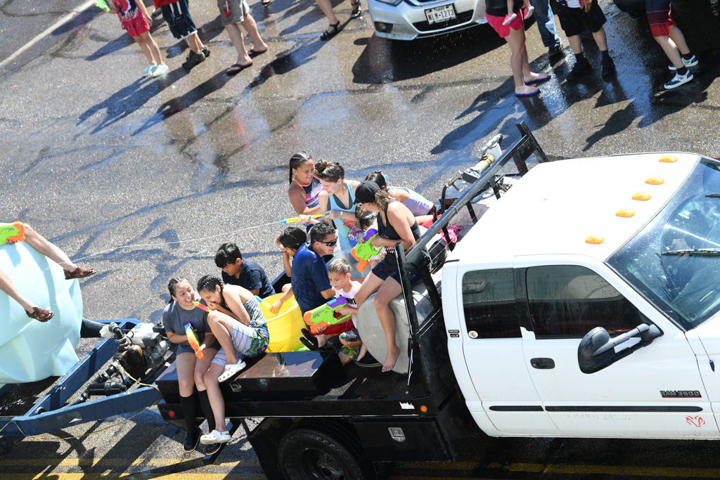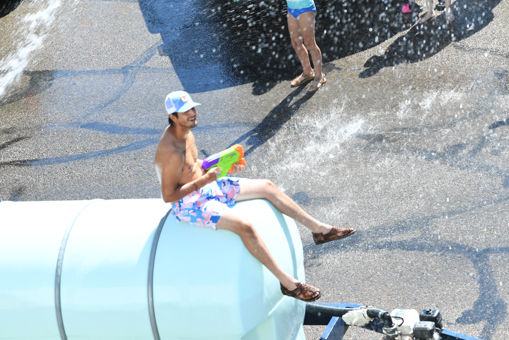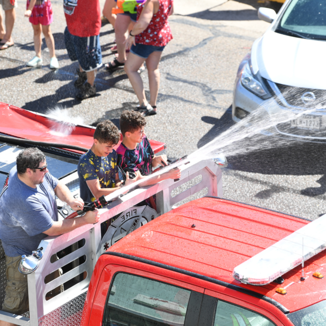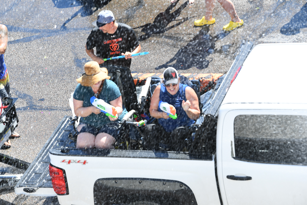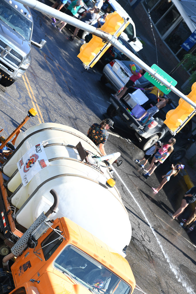 Due to current water restrictions, the La Junta Fire Department wasn't able to open the hydrant at 4th and Colorado like last year. However, The LJFD brought out the brush truck to spray down the locals.