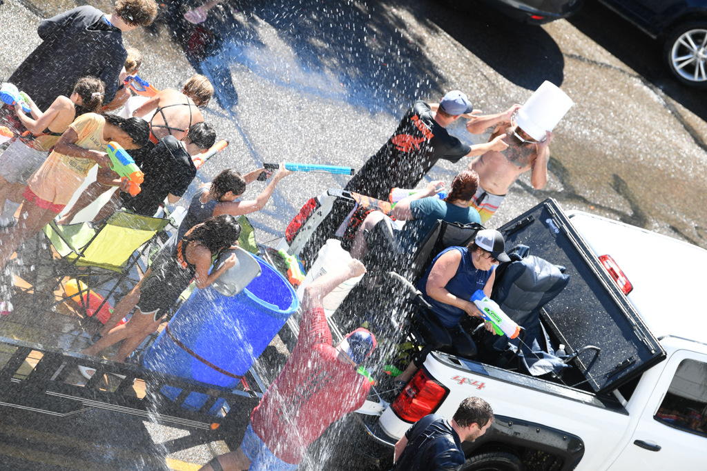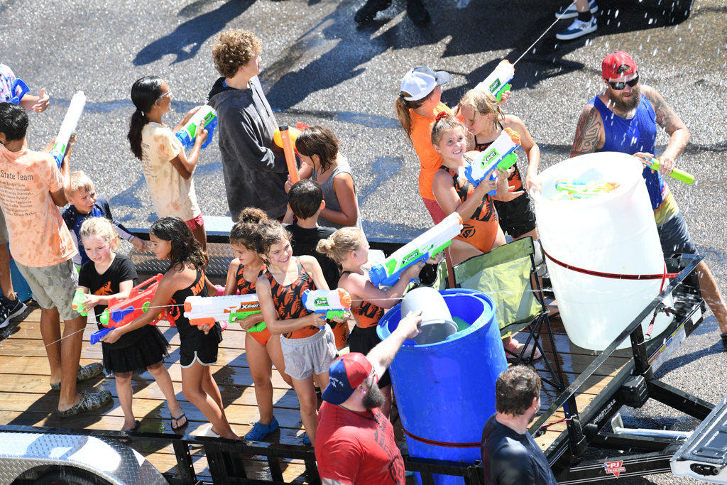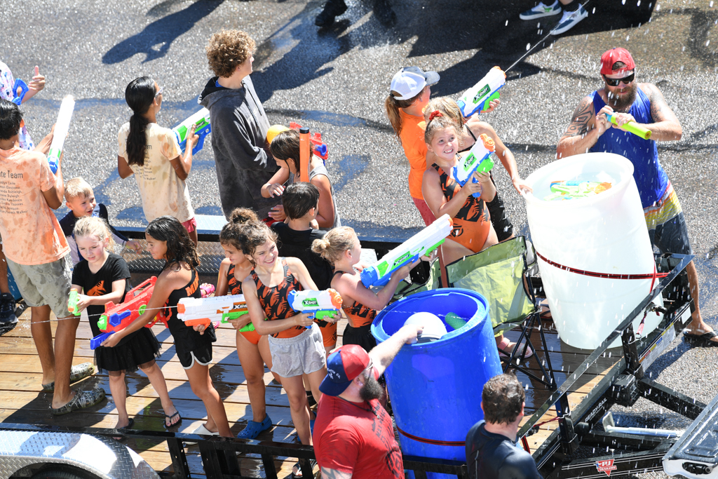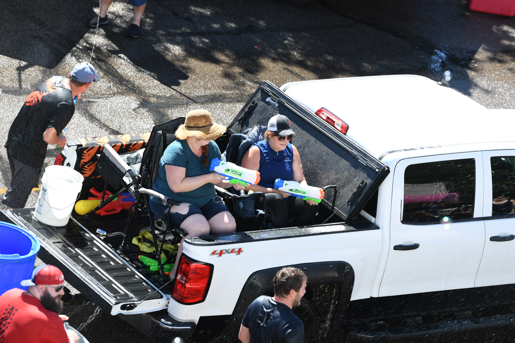 How do you win a waterfight against a pickup load of water? Bring a bigger boat...