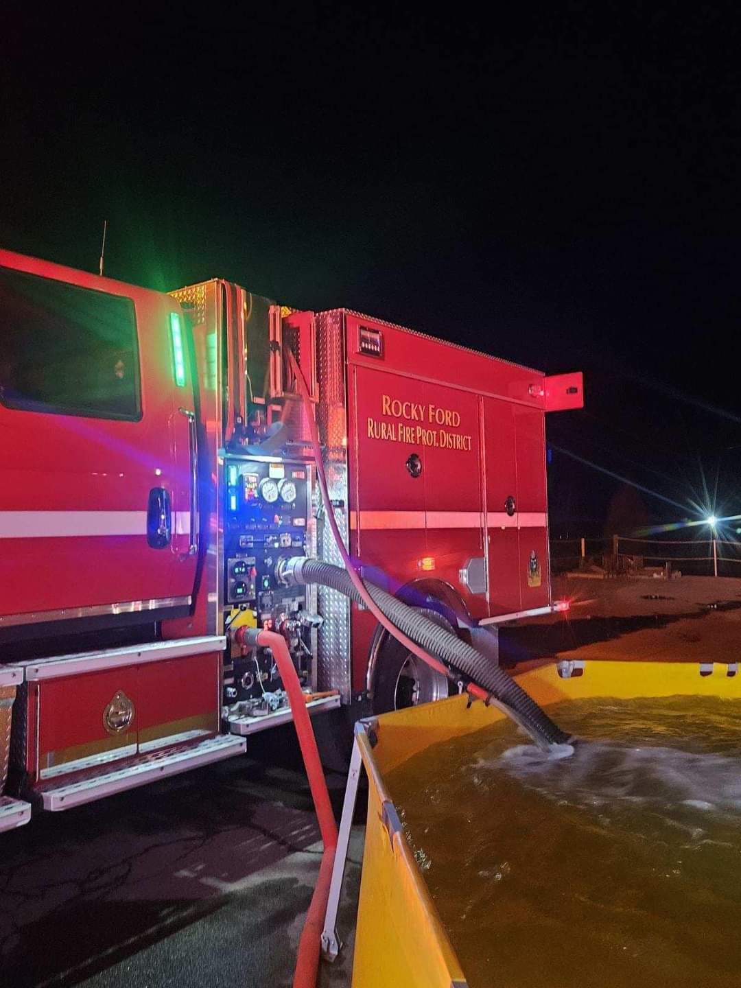 Assisting this operation was Fowler Fire Dept. Rocky Ford Fire Department. Manzanola Fire Dept and numerous others providing water tenders to supply La Junta ladder truck.