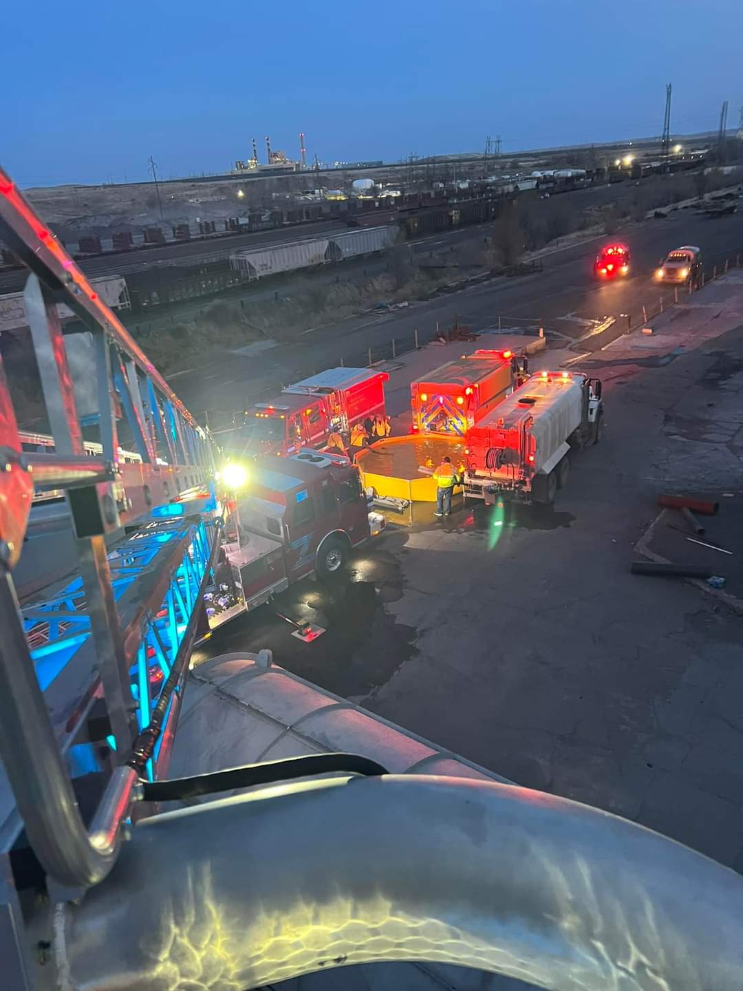 Yesterday at approx 430pm we were requested to respond to Pueblo to assist with the fire at Evraz Steel Mill with our ladder truck.