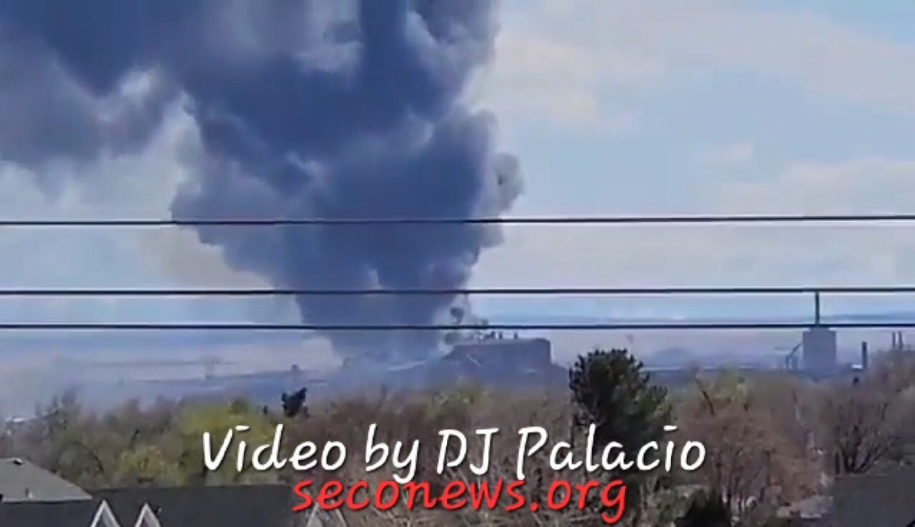 The Smoke Plume from the Fire at the Evraz Steel Mill Video