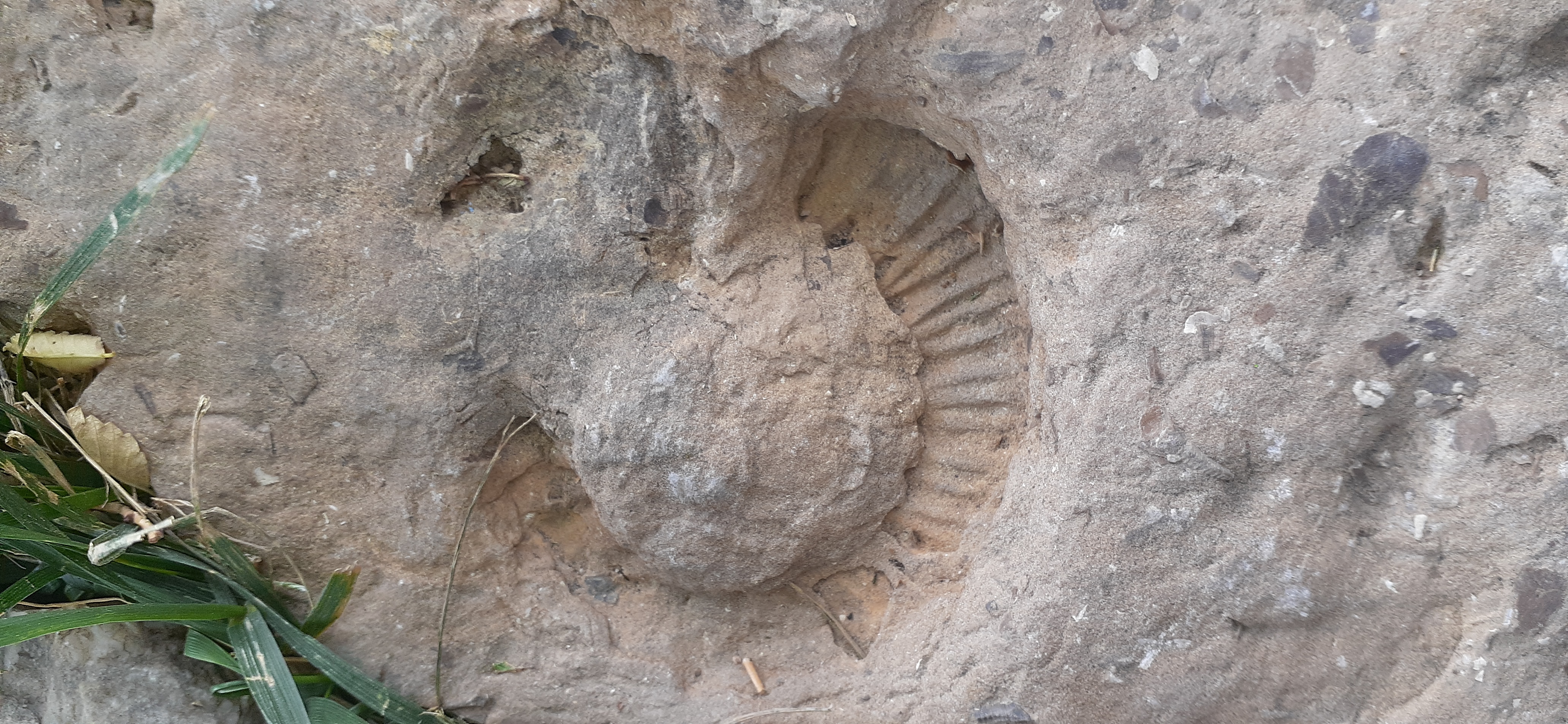 From canyonlands South of La Junta, this fossilized shell impression is common, but one this large (about first sized) is slightly less common.