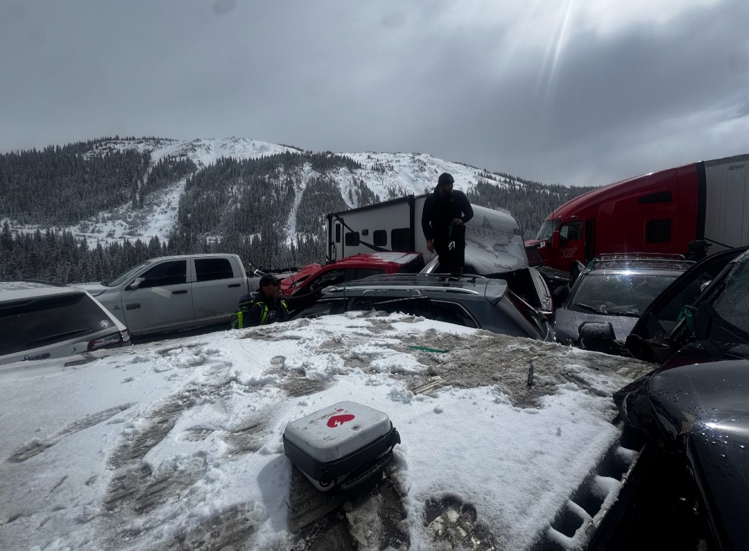 (COLORADO) - The most recent estimate from responders at the scene shows that approximately 70 vehicles were involved in this incident, with 19 people evaluated on scene for injuries, 11 declined transportation, 8 were transported to nearby area hospitals for their injuries, and one person of those 8 sustained serious bodily injuries.