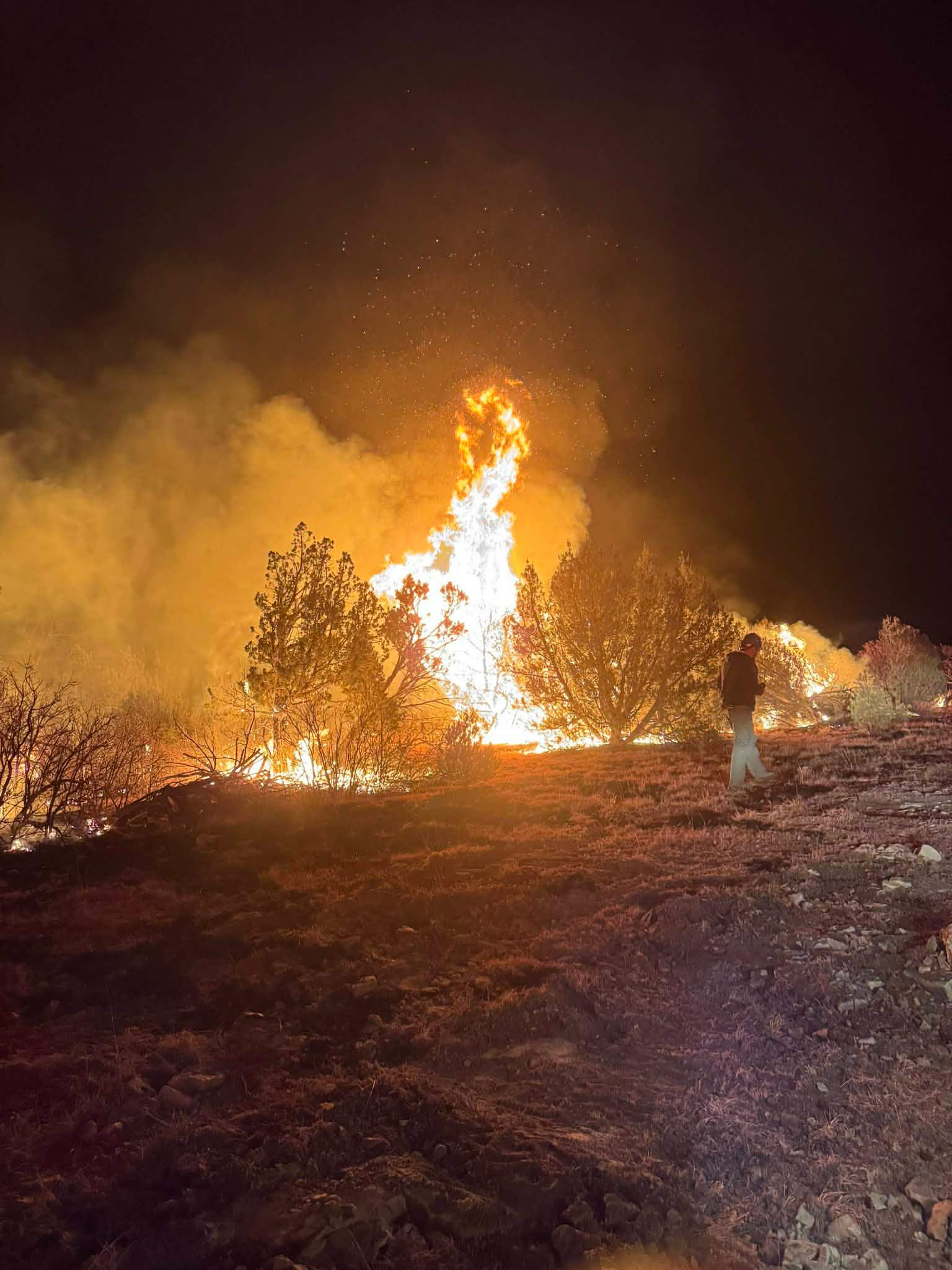 Description: The Poitrey Canyon Fire has expanded to 2,065 acres with 0% containment. Fire crews, air tankers, and helicopters continue suppression efforts as more resources are deployed. Photo credit: Hoehne Fire Firefighter Jerry.