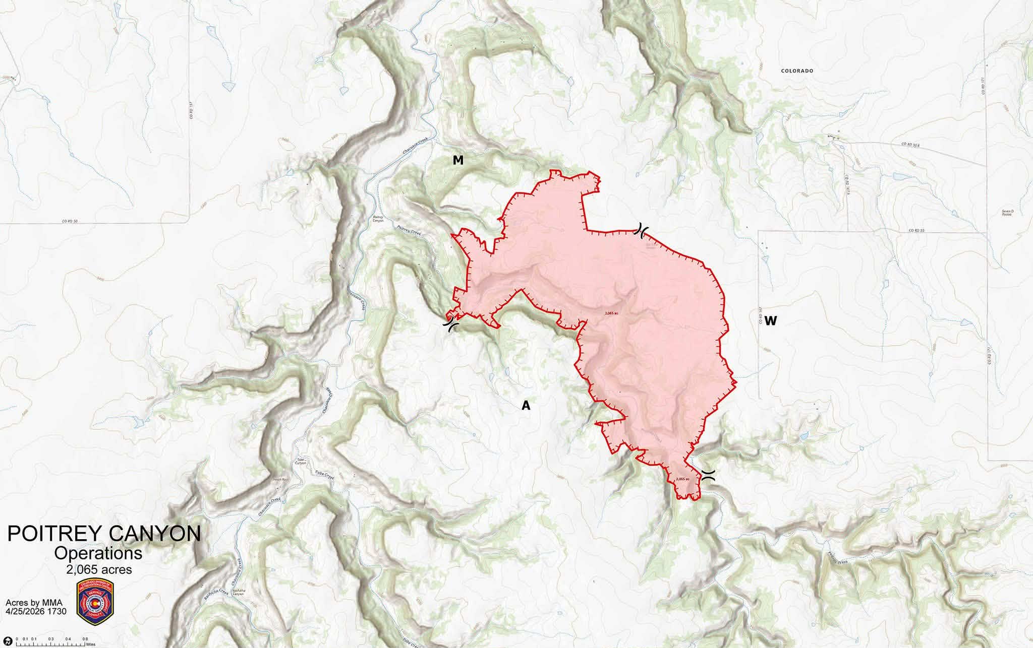 Fire officials report that the Poitrey Canyon Fire has grown to 2,065 acres and remains 0% contained, as crews continue aggressive suppression efforts on multiple fronts.