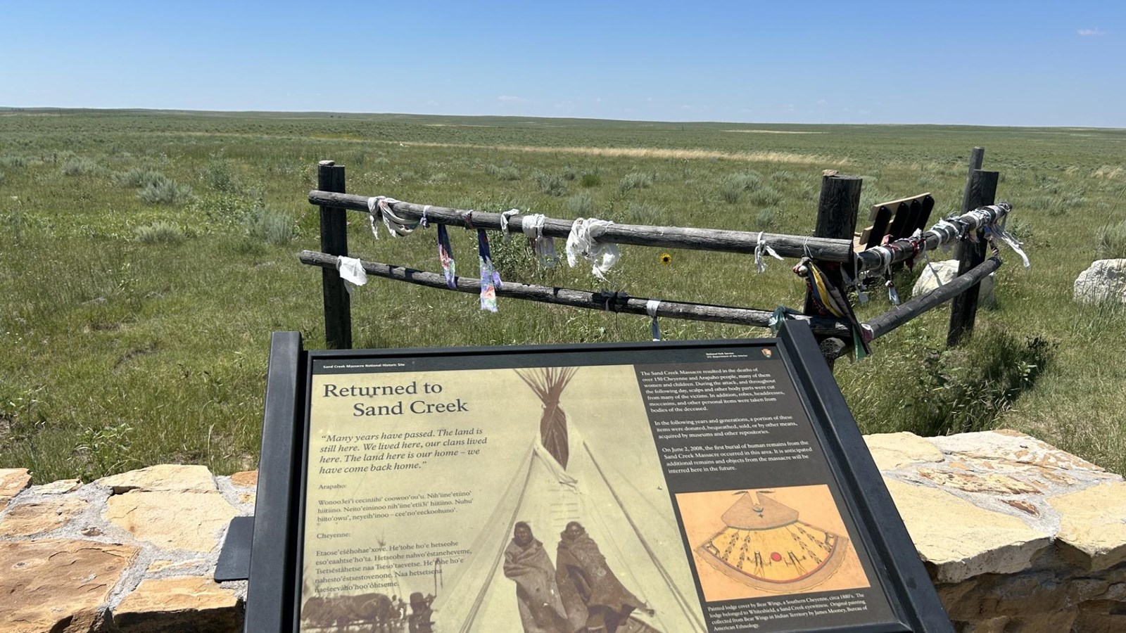 The site commemorates the Sand Creek Massacre of November 29, 1864, when U.S. volunteer troops attacked a peaceful encampment of approximately 750 Cheyenne and Arapaho people. Many of the victims were women, children, and elders, who believed they were under the protection of the United States Army and were flying a white flag of truce.